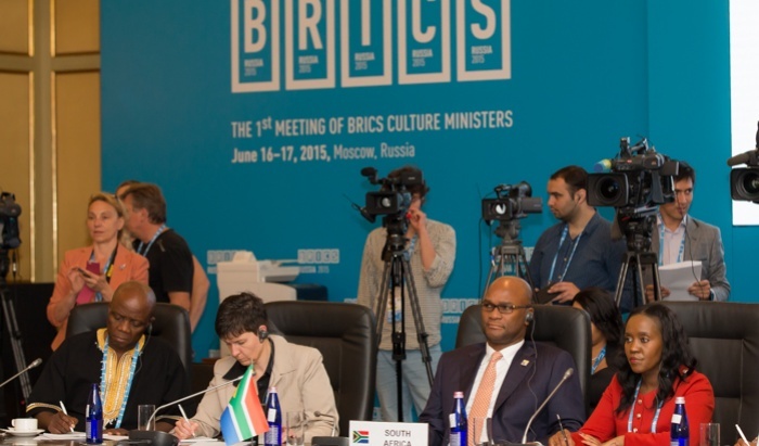 В совещании Министров культуры стран БРИКС в Москве приняли участие Министр культуры КНР Ло Шуган, Министр искусств и культуры ЮАР Нати Мтетва, глава Ассоциации киноиндустрии ЮАР Зама Мкоси, Чрезвычайный и Полномочный Посол Бразилии в РФ Антонио Геррейро, заместитель главы Дипломатической миссии Индии в РФ Сандип Арья, директор Департамента международных культурных связей Минкультуры Индии Монали Дхакате. Следующая встреча министров состоится в 2016 году в Индии.