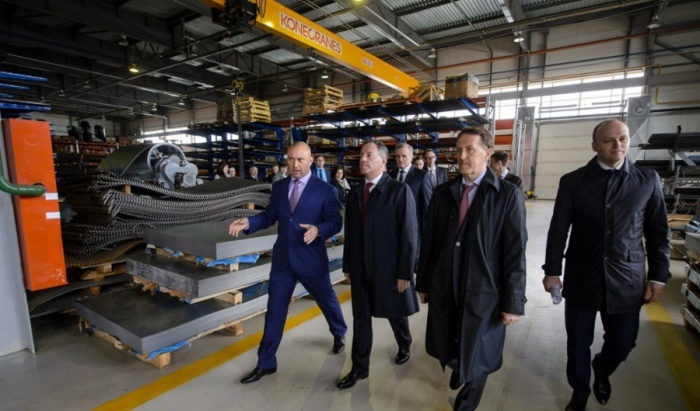 Затем делегация осмотрела производство предприятия «Спецстальтехмонтаж». Генеральный директор завода Владимир Фирсов сообщил, что завод по производству металлических каркасов зданий любого назначения открылся в августе 2014 года.