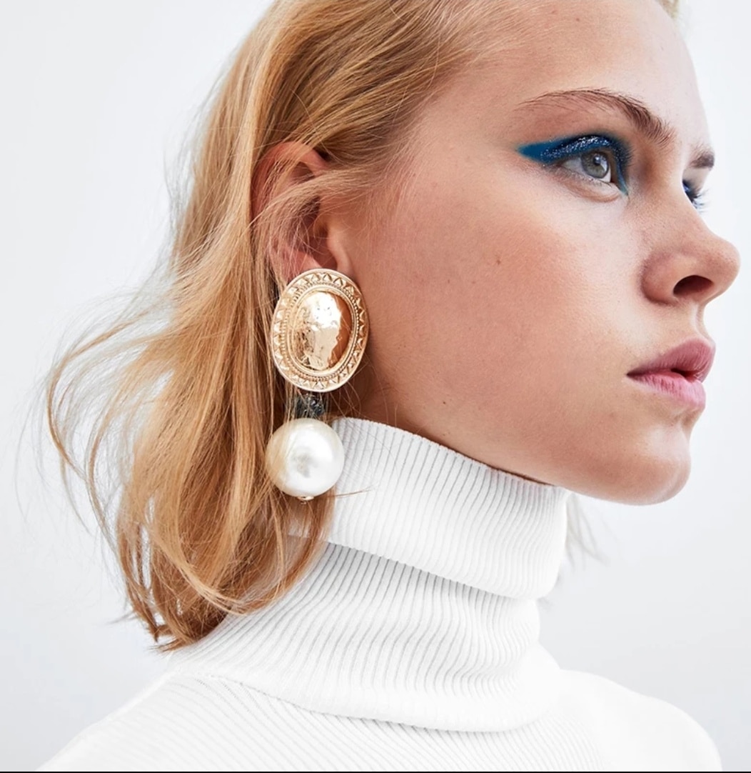 К ним относятся крупные овальные, круглые, удлиненные серьги. Они могут быть различных цветов и ее обязательно подходить под цвет металла других украшений.