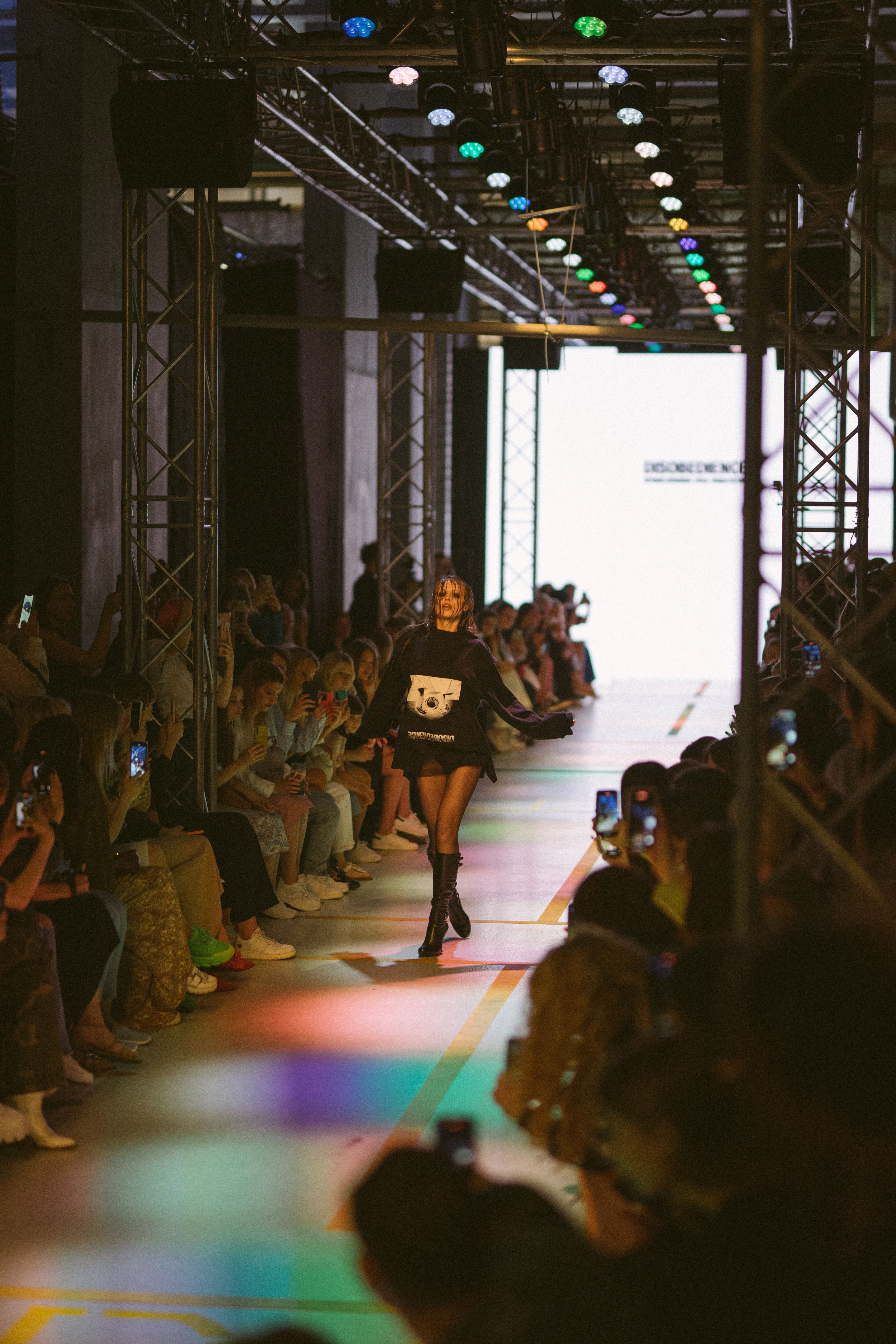 Еще один молодой бренд из северной столицы DISOBEDIENCE показал коллекцию на подиуме в парке «Зарядье». Получилось настоящее шоу, которое начиналось с танца и заканчивалось им. Под динамичную музыку выходили модели, которые продемонстрировали мужскую и женскую уличную одежду: худи, футболки с актуальными надписями и принтами, карго, бомберы и платья с оголенными плечами. Цветовая гамма двуцветная: черный и хаки. Игра с формой, фактурой и декором позволила создать хулиганские комплекты в стиле панк и передать эстетику уличной моды.