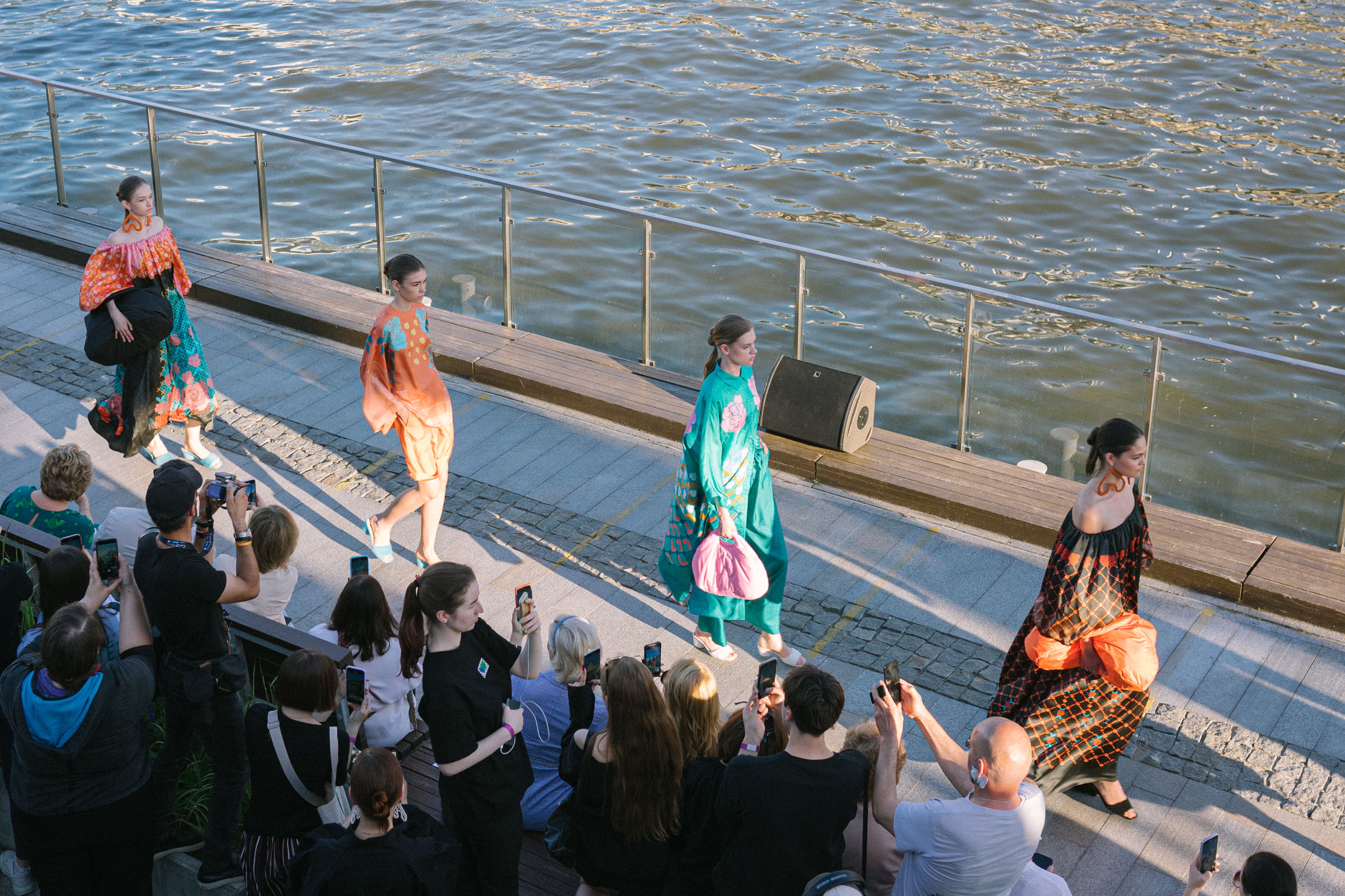 Гости «Зарядья» в четверг увидели коллекции брендов Industry, EQ.ONA, DISOBEDIENCE, BITTE_RUHE, Osipova Dasha, STUDIO 29, VESTIAIRE и White Crow. Показ AKHMADULLINA, прошел в живописном месте – на Москворецкой набережной в «Зарядье». В Большом амфитеатре парка провела свое подиумное шоу Академия брендинга и дизайна METRICS. Мероприятие собрало большую аудиторию, как и все остальные студенческие показы.