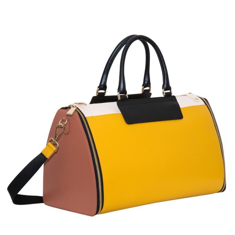 Универсальные модели аксессуаров нового сезона совмещают в себе сразу две сумки: большая и вместительная таит в себе мини-сумочку или клатч, который может быть использован как вместительный карман, так и отдельным аксессуаром, дополняющим идеальный вечерний образ. Вместительная Furla Dama и креативная Furla Fantasia идут в комплекте со съемной сумочкой Furla Metropolis на внешней стороне. Очаровательная маленькая Furla Metropolis смягчает строгость двуцветной объемной Furla Zafiro, которая остается по-прежнему многофункциональной благодаря своим вместительным карманам. Культовая Вселенная Furla Metropolis дополнена большой двуцветной версией с геометрическим 3D-рисунком на ремне или ручке. Главная жемчужина новой коллекции – сумка Artesia, которая идеально передает настроение весенне-летнего сезона. Благодаря структурированному дизайну, верхней ручке и мягкой коже она становится настоящим произведением кожевенного искусства. Яркая черта Artesia bag - геометрия деталей. Она словно состоит из фигур контрастирующих цветов. А металлические золоченые детали придают ее виду еще более элегантный вид. Обувь Furla - еще одна постоянная величина между формальным и неформальным стилем. Новые модели обуви – сникеров и лоуферов - идеальное воплощение концепции унисекс. Все модели аксессуаров и обуви из новой коллекции Furla сделаны из телячьей кожи, в том числе с тиснением в виде оленьей кожи или с забавными принтами комиксов.