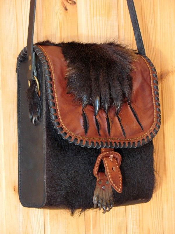 В основном, я использую кожу коровы. Иногда выбираю более экзотические материалы: кожу косули, кабана или мех лисы. Недавно делал сумку с росомахой. У меня есть один товарищ, который занимается таксидермией — я иногда у него беру необходимые детали — лапы, куски меха, когти. Однажды я сделал сумку с медвежьей лапой — народ увидел в интернете и все стали заказывать такую же. Но я их ограничиваю - ведь мне надоедает одно и то же делать, нужно что-то новое придумывать. Я же не могу просто повторить изделие - это глупо и мне стыдно за это брать деньги. Еще были популярны мои сумки с деревом — я как только ни выкручивался, чтобы сделать что-то наподобие, но не точно такое же.