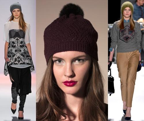 Особое внимание стоит обратить на модные кепки с козырьком, закрепляемым пуговицей, объемные береты грубой вязки с массивной булавкой , шляпки и шапки с различными мелкими деталями. В этом сезоне меховые и вязаные шапки еще не готовы отдать свои лидирующие позиции и поэтому остаются в тренде.