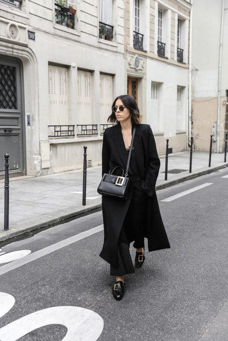 2. Сумка и обувь с пряжками под классическое пальто.
