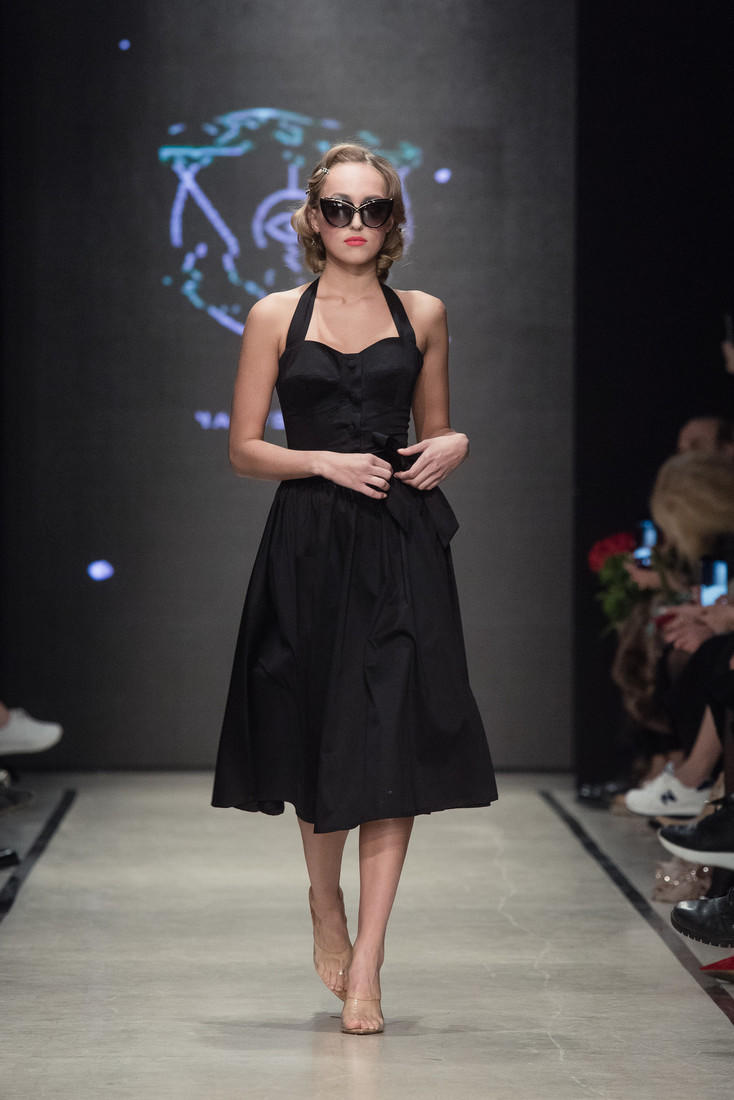 В свою первую коллекцию Летучая включила универсальные модели, которые впишутся в гардероб каждой. Здесь – маленькие черные платья на одно плечо, шорты-бермуды, юбки-карандаши, дерзкие боди и микротопы. Образы моделей были дополнены надписями, сделанными черной краской по телу. Внимание привлекли фразы на тему «Ревизорро», цитаты из комментариев в Instagram и ответы Летучей на них: «Вижу ваши грязные мысли», «Не оставляю следов», «Я просто пришла к вам», «Дома не убираю».