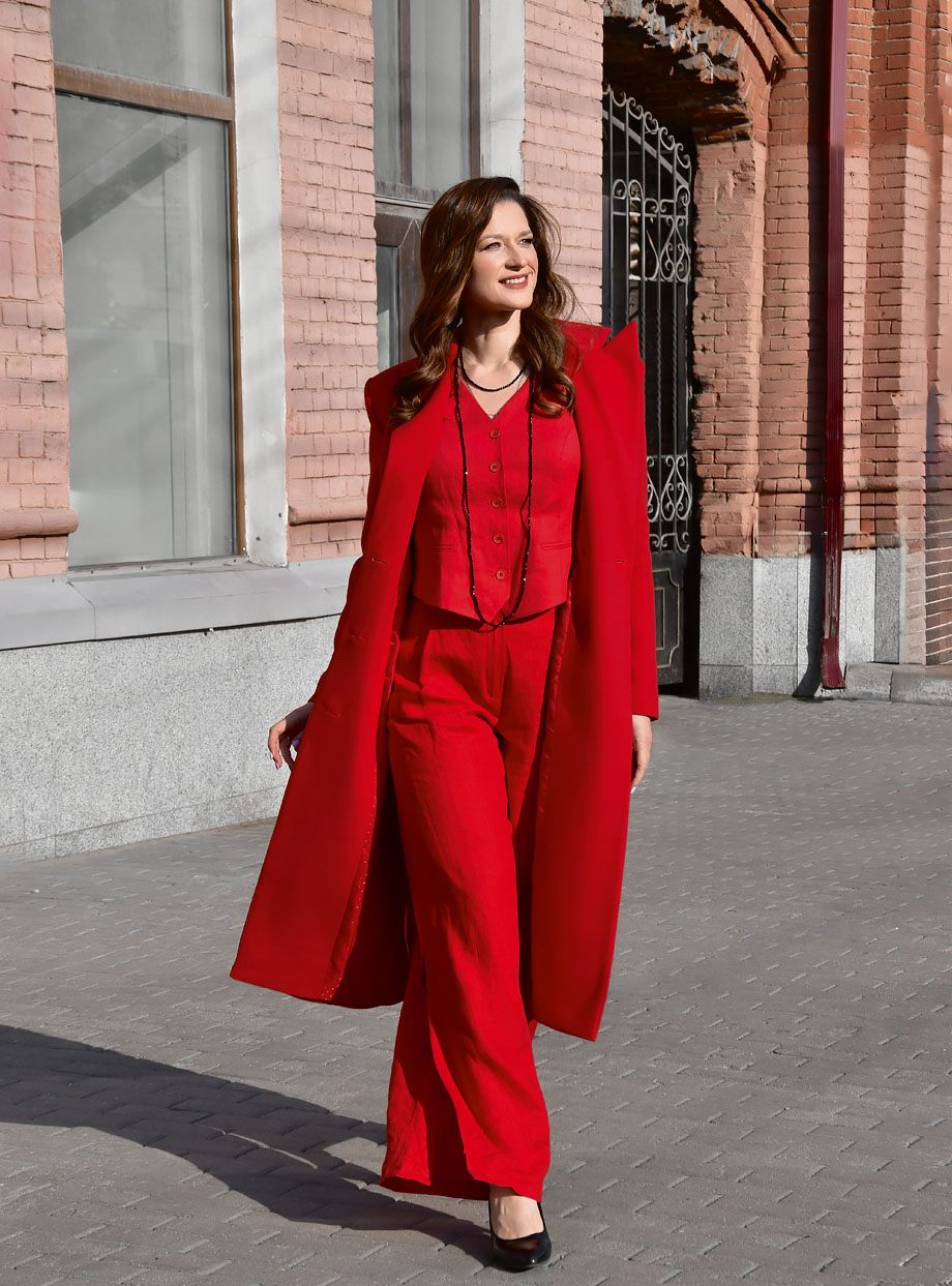 Был случай. Пришла клиентка, выбрала модную форму - активное плечо, акцентная линия. Смотрится эффектно, но всё внимание на пальто, а не на неё. И мы поменяли. Спокойный крой, чистое плечо, нужная длина, и вдруг в зеркале стало видно её лицо, её осанку, её походку. Вот это я считаю правильным. Когда вещь не спорит с женщиной, а подчёркивает её. Когда женщина в центре.