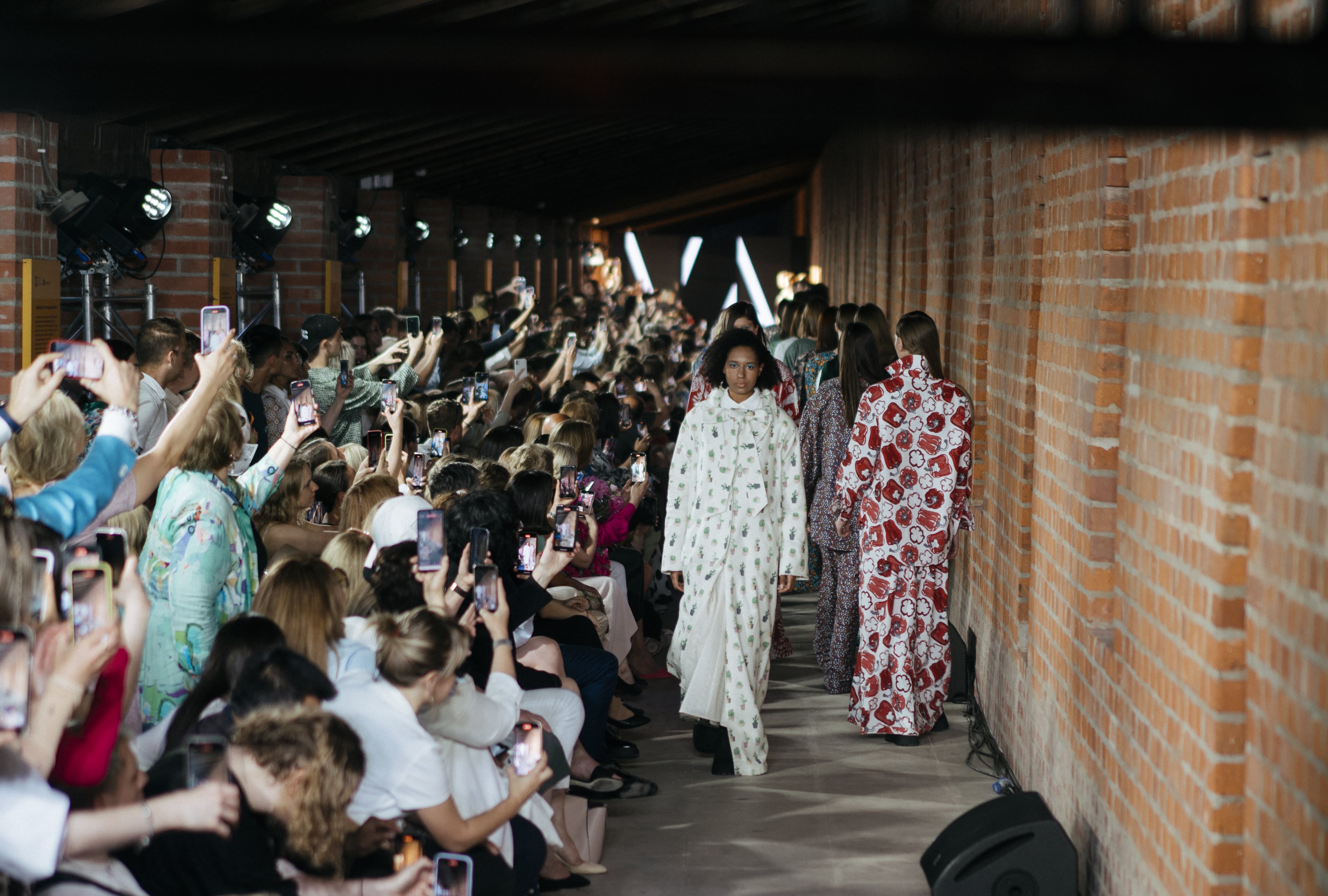 Новая коллекция дизайнера Виктории Андреяновой была разработана совместно с «Шуйскими ситцами» — крупнейшим производителем хлопка с 200-летней историей. Свободные силуэты, пестрые принты, яркая цветовая гамма, разбавленная чистым белым оттенком, — ключевые особенности новой линейки бренда. На подиуме были представлены платья макси и рубашки оверсайз-кроя, костюмы с жакетом на поясе и широкими брюками, короткие и длинные пальто.