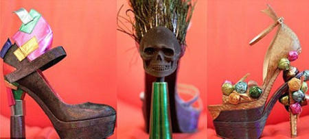 Туфли выполнены в стиле хай-тек. Они изготовлены вручную из дорогих материалов, украшены перьями и полудрагоценными камнями. Стать обладательницами этих роскошных туфель смогут только женщины с маленьким размером ноги – автор самых высоких в мире каблуков считает, что девушкам ростом выше 175 сантиметров такая обувь не нужна.