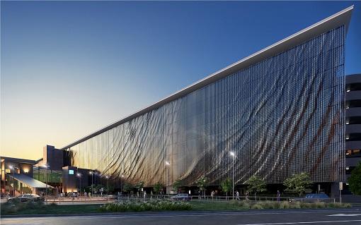 Еще одним хорошим примером динамического фасада может служить офисное здание Media-ICT в Барселоне, разработанное архитектурной компанией Cloud 9Architecture. Фасад представляет собой ячеистую структуру с включением в нее специальной термооболочки. В период низких для Испании температур она может надуваться, создавая дополнительную воздушную прослойку, препятствующую охлаждению помещений, а летом мембраны выполняют роль солнцезащитного экрана. Такая облицовка позволяет существенно экономить электроэнергию. Кроме того, крыша оснащена солнечными батареями и системой сбора дождевой воды для последующего ее сантехнического использования.