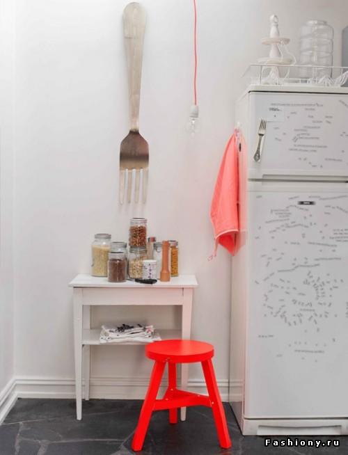 Небольшие сочные детали заставляют засиять дом новыми красками. Яркая фурнитура, настенные часы, коробочки для мелочей, наклейки для стен и потолка ,достаточно грамотно расставить неоновые акценты, чтобы получить неожиданный и интересный визуальный эффект.