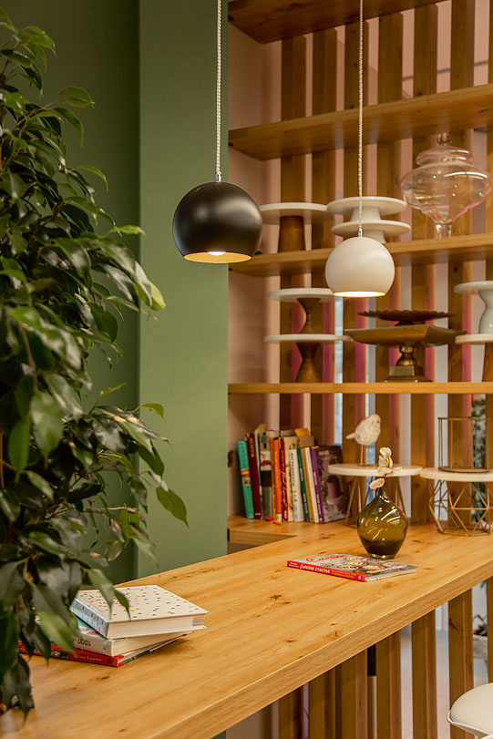 Одним из таких проектов стала Кондитерская Школа Инны Питеровой. С владелицей Русана знакома давно. Она с интересом наблюдала за ее творчеством и, конечно, с удовольствием согласилась создать дизайн-проект новой школы. Инна — известный мастер кондитерского искусства не только в Воронеже, но и в других городах нашей страны. Ее работы отличаются неповторимой нежностью, оригинальными сюжетами, искусным художественным оформлением и проработкой мельчайших деталей. Этого кондитера по праву можно назвать художником, так как ее хобби — писать абстрактные интерьерные картины, одна из которых уже нашла свое место в новом интерьере.