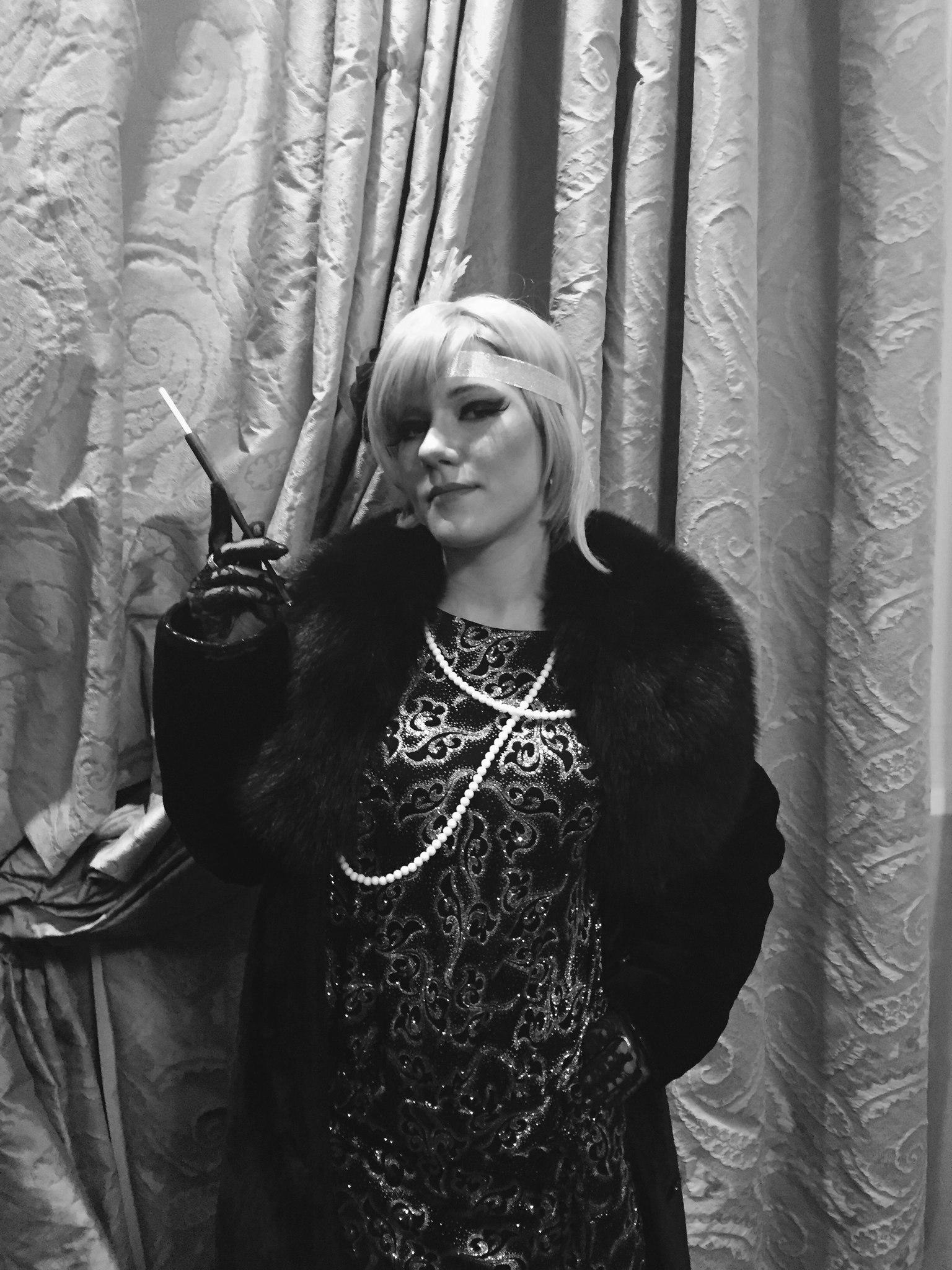 Начало мероприятия было намечено на 19:00, но уже за пару часов до вечеринки в роскошном зале отеля "Дегас" появились молодые люди в костюмах времён 20-х годов прошлого столетия. Как выяснилось, это были участники события - модели кабаре-дефиле и музыканты домра-бэнда "Большая игра".