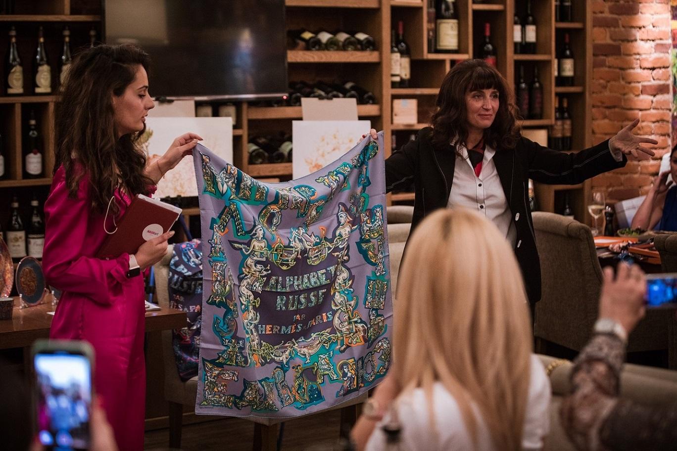 Вечеринка «ART MIRO» прошла в ресторане «IL Forno». Евгения Миро рассказала о жизни в эмиграции, о работе с Hermès, о русских мотивах в своём творчестве и о создании дизайна для аксессуаров. Художница показала тарелки и платки, созданные для Hermès и с каждым расписала фарфоровую тарелку от Императорского Фарфорового Завода, которую гости забрали на память об art-party.
