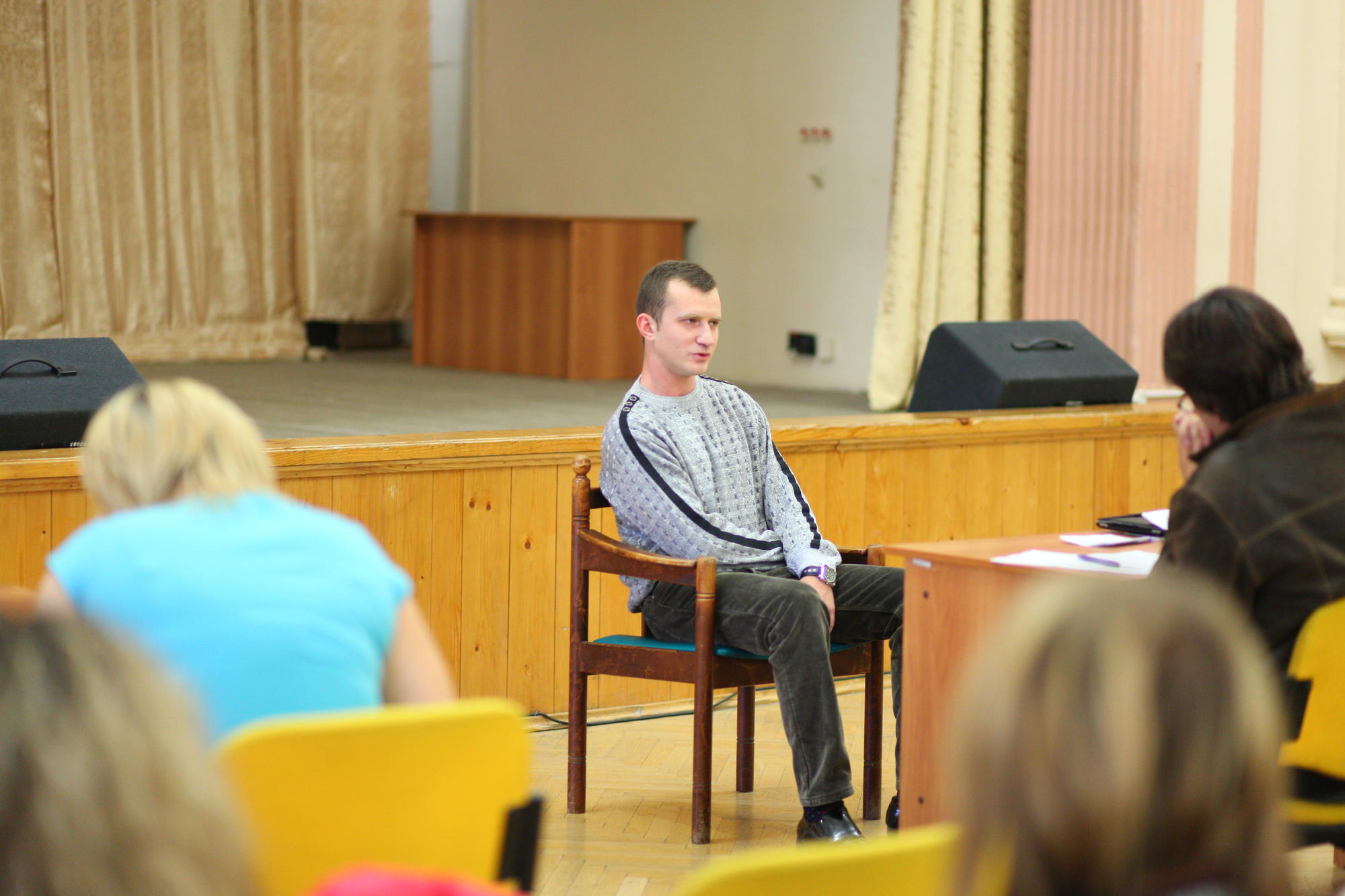 Председателем жюри стал художественный руководитель "Театра равных" Вадим Кривошеев, выбирать ребят ему помогали главный редактор журнала "Время культуры" Олег Котин и главный педагог инклюзивного проекта Анна Гребенщикова. Помимо подготовленной программы каждый участник получил дополнительные задания, а двое счастливчиков даже разыграли с судьями этюды. Абсолютно каждого участника кастинга Вадим Кривошеев спрашивал, почему он решил пойти в "Театр равных", в этом случае ответы всегда разнились: кто-то хочет получить новый опыт, кто-то стать уверенным в себе, а кто-то реализовать заветную мечту всей жизни - играть на сцене.