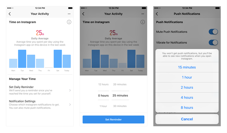 Неизвестно, насколько прибыльным это решение окажется для Instagram, но функция «самоконтроля» теперь там есть. Как и в Facebook, только в разделе Your Time On Facebook, который можно найти в настройках.