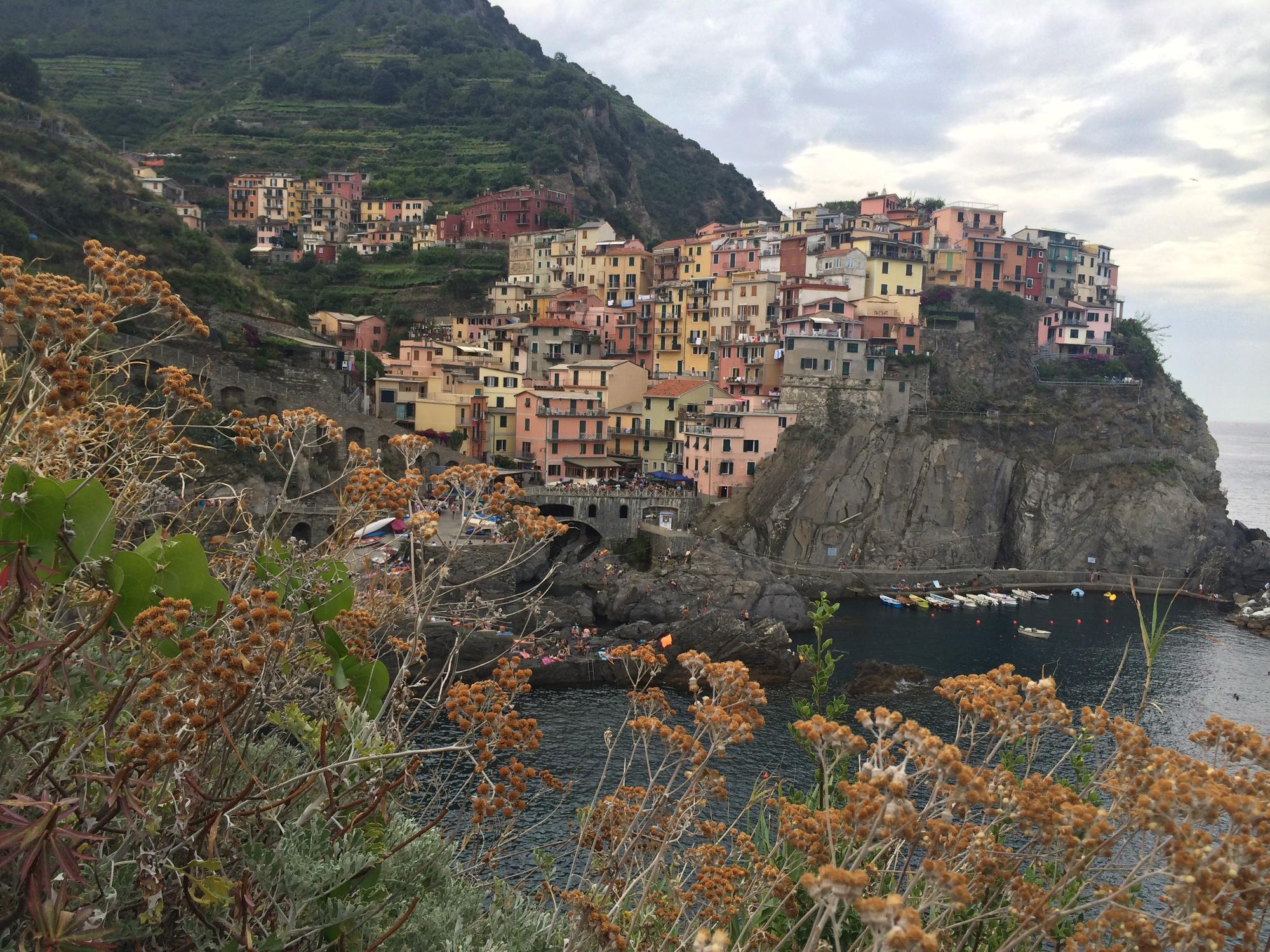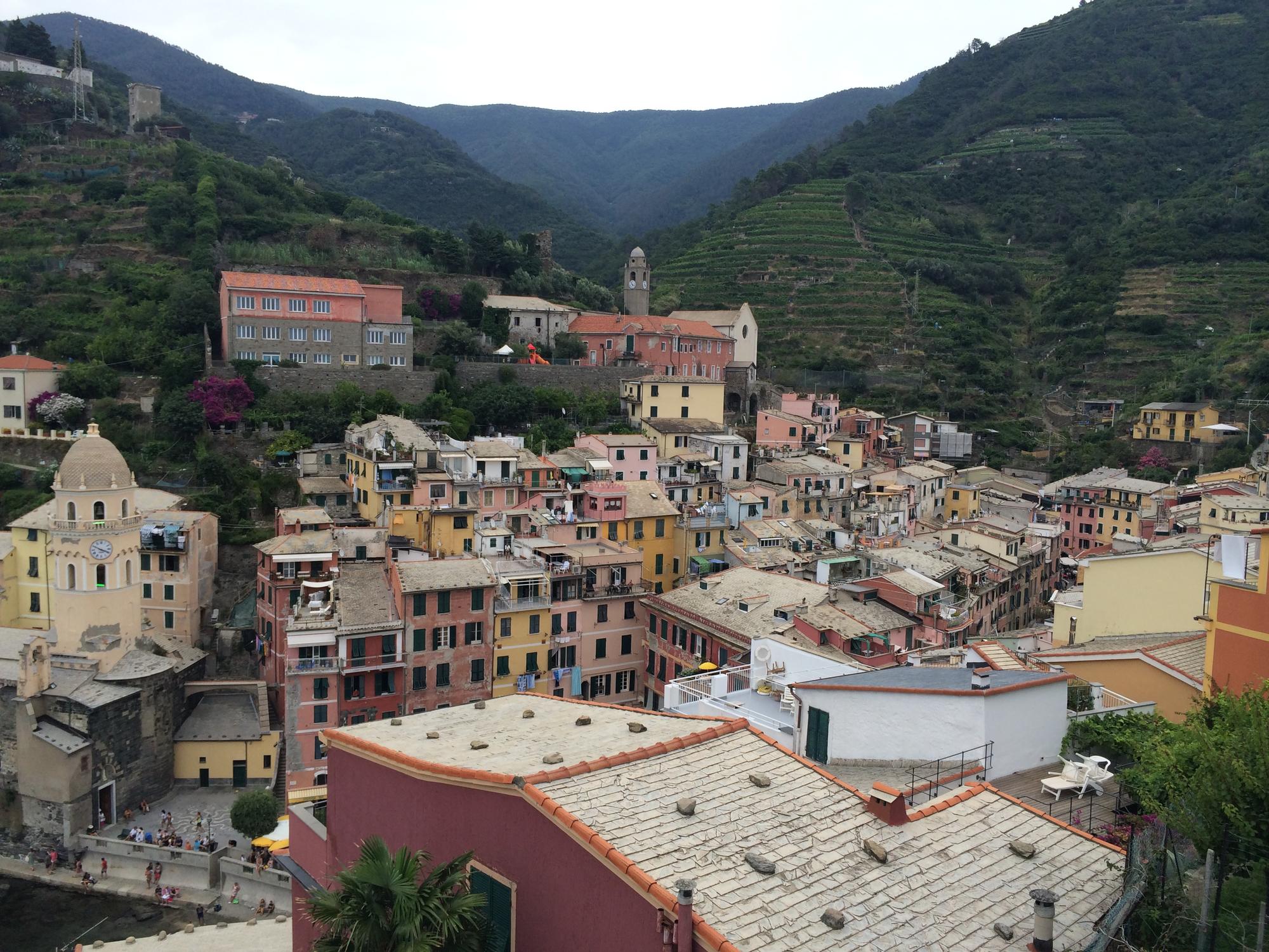 Cinque terre – это жемчужина Лигурии, жемчужина морской Италии. Это 5 малюсеньких деревенек, которые расположились друг за другом на расстоянии не больше, чем 2 км – MonteRosso, Vernazza, Corniglia, Manarola и Riomaggiore. На самом деле, это обычные бедные рыбацкие городки, где основной заработок людей – сбор винограда и как раз таки рыбалка. И все бы ничего - подумаешь, какие-то рыбацкие деревни- если бы не потрясающие виды, открывающиеся с этих самых деревень. Такой ощущение, что ты оказался в открытке. Цветные обшарпанные домики, которые нависают друг над другом, невероятные скалы, откуда торчат потрясающе красивые деревья, трава, цветы, запах моря, голубо-зеленая вода! Ты смотришь на все это и не веришь, что еще вчера ты видел это в интернете, а сегодня ты оказался внутри этих потрясающих пейзажей!