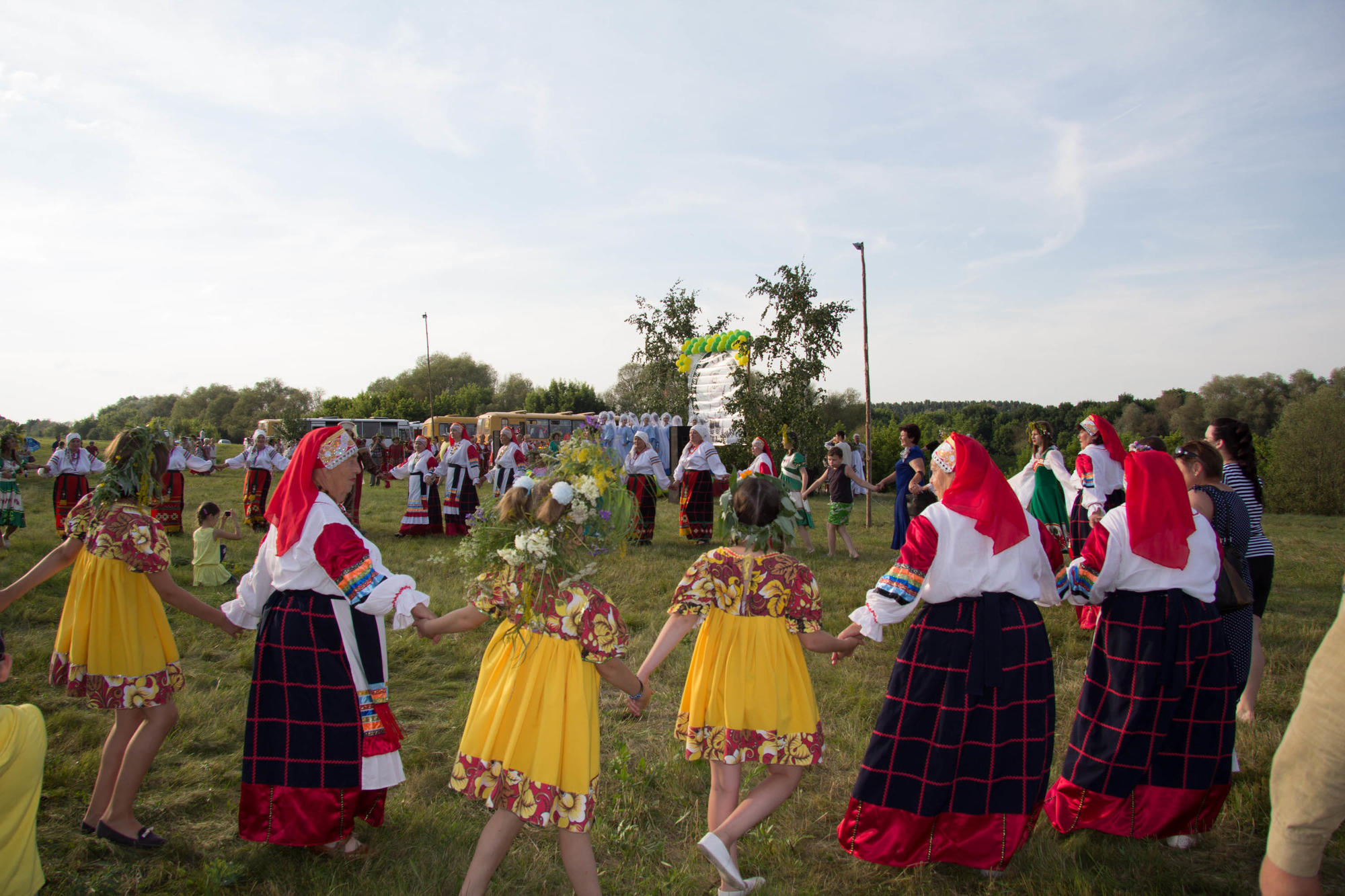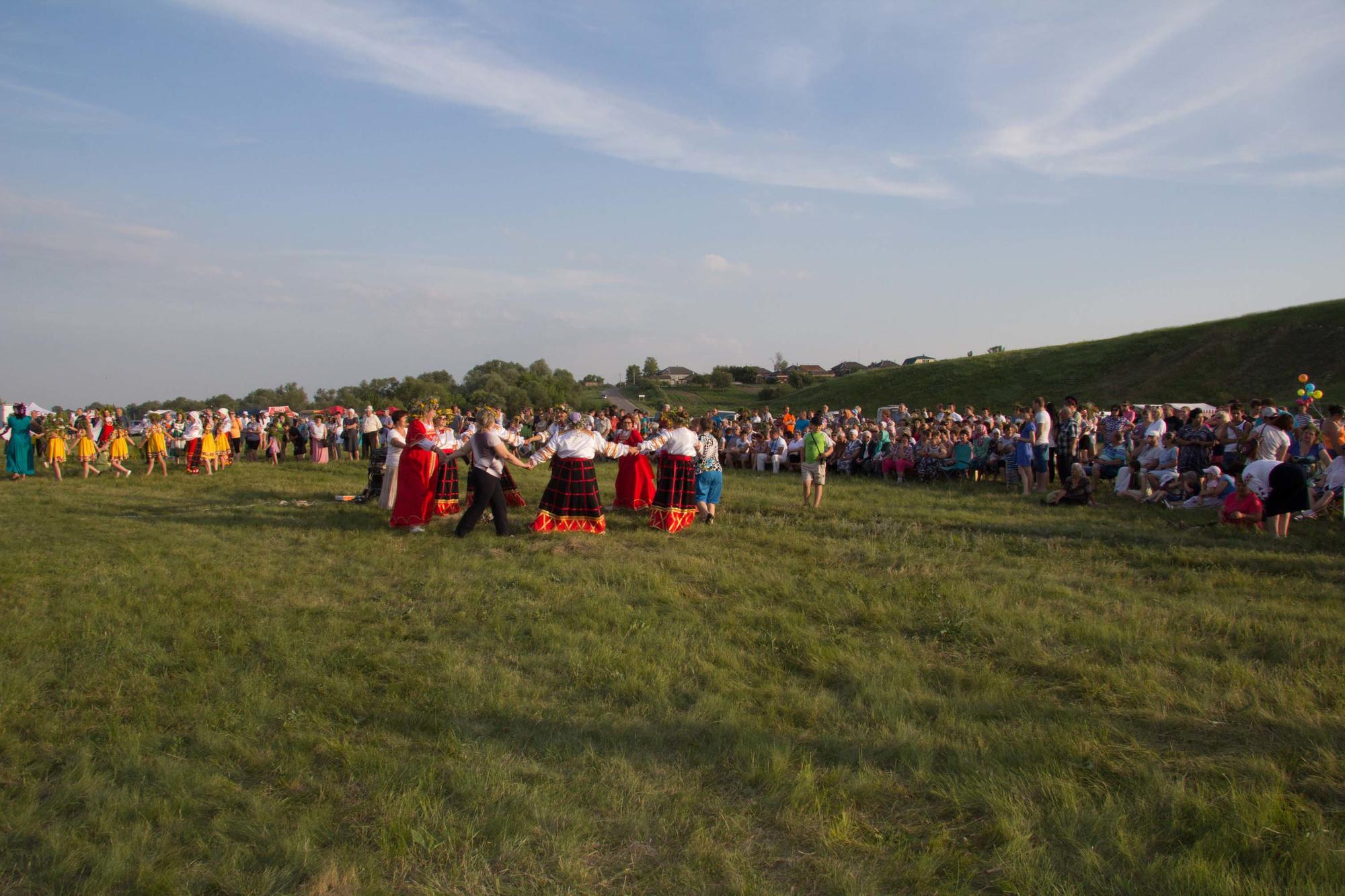 Начался праздник с приветствия бога Солнца Ярило, который пришел чтобы поздравить участников и гостей фестиваля. Он открыл концертную программу, в которой приняли участие около 20 фольклорных коллективов Воронежской области. Их песни настолько зарядили всех зрителей своей энергией, что в пляс пустились даже те гости, которые, приехав после рабочего дня, устало сидели на траве. Чтобы взбодрить их, организаторы включили в программу различные русские конкурсы и викторины и накормили традиционной пшенной кашей сливухой и вкуснейшей ухой с пылу с жару.