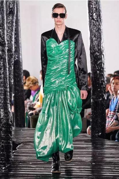 Эта неделя моды оставила двоякие ощущения. Стадартные мужские костюмы дизайнеры разбавили весьма эксцентричными. Практически каждый вывел на подиум хотя бы одного парня в условно женском наряде. Таким образом бренды высказались против «токсичной маскулинности».