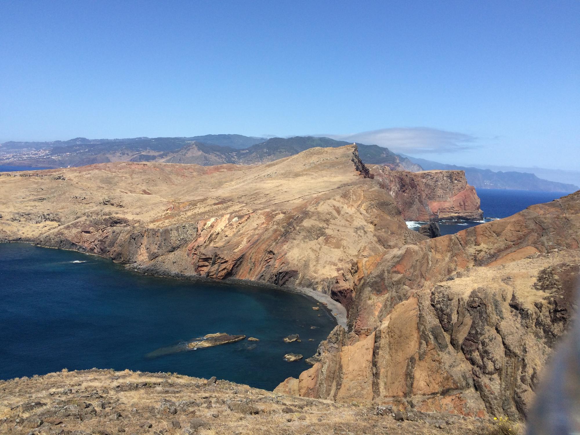 Одним из умопомрачительных мест Мадейры является другой мыс - Сан Лоренцо. Надо сказать, что Мадейра — это странный и противоречивый остров. Середина его утопает в зелени, горы, высота которых достигает 2000 метров, аккумулируют в себе холодный воздух, а запад, несмотря на то, что размеры острова очень и очень маленькие, — самый засушливый, где практически ничего не растет, и складывается ощущение, что ты в пустыне, или на Марсе. Именно этот Марс оставил у меня совершенно неизгладимые впечатления. Добраться до Сан Лоренцо можно на автобусе. Из Фуншала они ходят не так часто, но расписание более менее удобное. Транспорт довозит вас до конечной остановки, а дальше, чтобы попасть на мыс, надо идти пешком. Долго, жарко, утомительно, то вверх, то вниз. Но это просто настоящая ерунда по сравнению с тем, какие эмоции ты получаешь от увиденного. Я даже не знаю, как это описать. Пустынные безжизненные горы, скалы, на которых изредка растут колючки и цветы, любящие жаркий климат, узкие дорожки по горам, нереальный океанский ветер, который буквально сносит тебя, дикие очень и очень красивые пляжи, которые скрыты от посторонних взглядов и напоминают пляжи из фильма «Голубая лагуна», застывшие черные потоки лавы, которые остались тут еще со времен извержения вулканов. Очень сложно поверить в то, что то, что ты видишь — реальность. И тебе приходится снимать очки, чтобы воочию без фильтров и лишней пелены увидеть то, о чем ты раньше читал в книгах и смотрел в интернете. Мы живем в больших городах и не понимаем, что где-то есть такое, что нам даже не снилось.. То, чего не касалась рука человека. Эти пейзажи — такие же, что и были сотни, миллионы лет назад. Здесь ничего не изменилось. Возможно, только лишь ветер немного раскрошил породу гор и океан размыл их основание. Но именно эти пейзажи были тогда! И когда‑то из этого вулкана текла лава, оставив сегодня нам свои следы. Черные, страшные… Возможно для того, чтобы мы и все будущие поколения видели всю мощь нашей природы и понимали, что человек в ней песчинка. Длина маршрута по мысу в одну сторону — около 3 км. Вроде бы немного, но за счет испепеляющей жары и сложного рельефа, передвигаться сложно и муторно. Так что запаситесь удобной обувью, кремом от солнца, едой, водой и вперед.