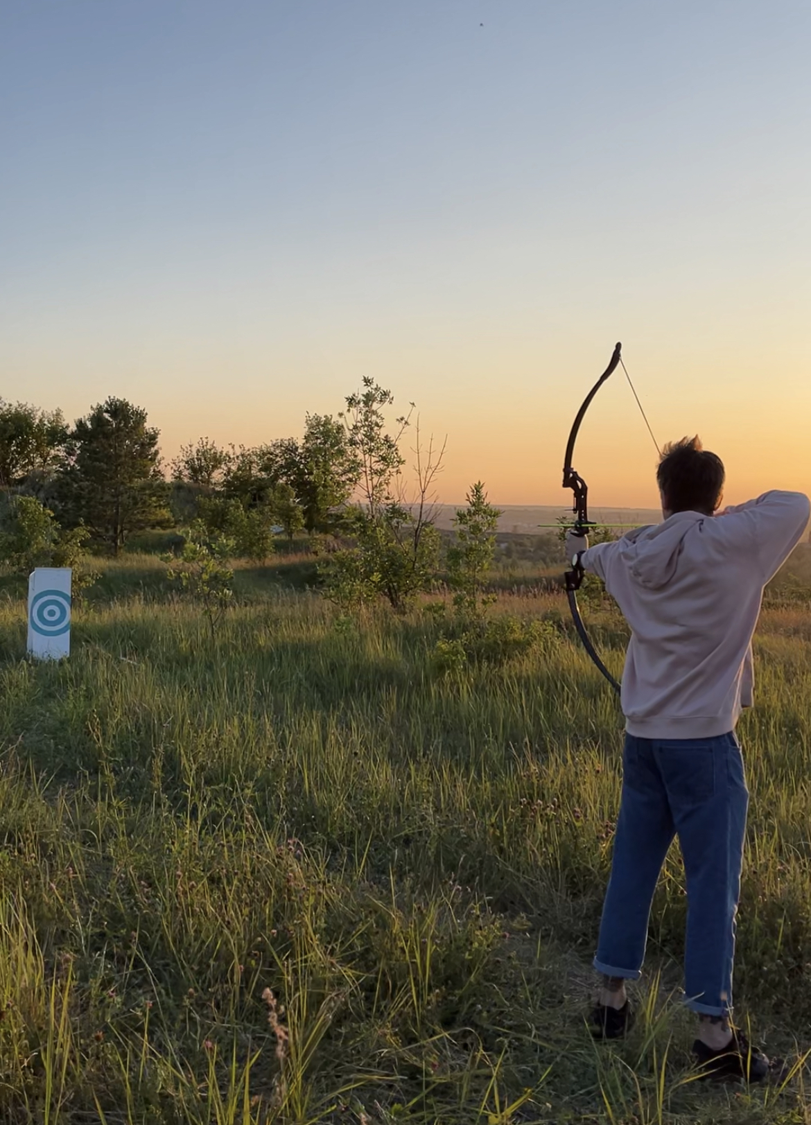 Мы стреляли из лука, рисовали акварелью на закате прекрасные виды, сыграли в игры на знакомство, а после захода солнца - смотрели фильм под открытым небом.