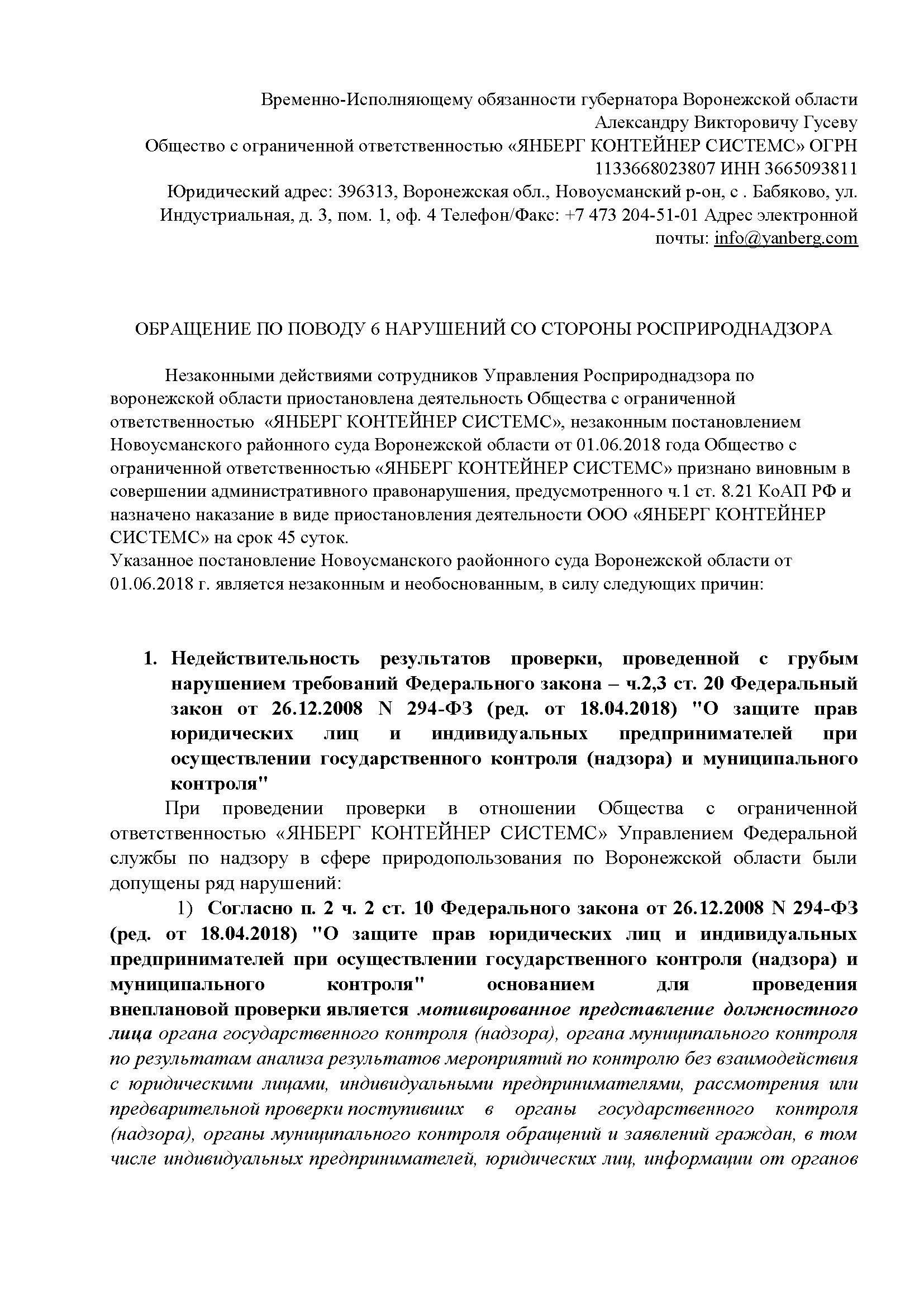 Приложение № 1. Обращение по поводу 6 нарушений Росприроднадзора.