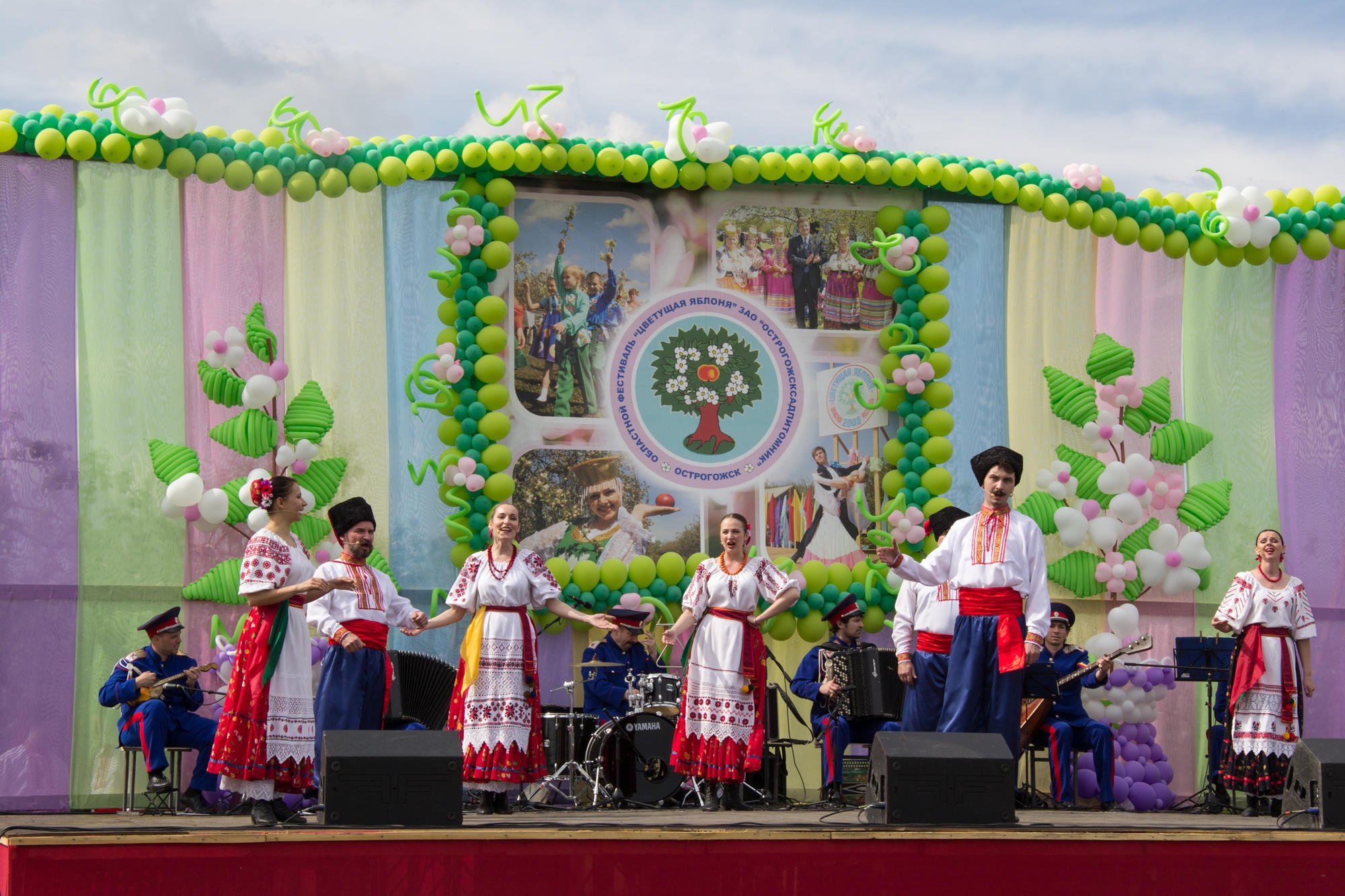 В 13.00 на площадке началось красочное эмоциональное театрально-хореографическое представление «Сотворение мира», подготовленное народным танцевальным коллективом «БЛИЦ». Мероприятие продолжилось гала-концертом лауреатов творческих коллективов Острогожского муниципального района, которые своими заводными песнями поддержали на поляне веселую атмосферу. Гвоздем программы стало выступление волгоградского Государственного Ансамбля Российского казачества «Казачий курень», лауреата многочисленных всероссийских и международных фестивалей и конкурсов, история которого начинается в 1935 году. А завершился концерт выступлением питерского певца Игоря Латышко, лауреата конкурса «Песни года», премии «Золотой граммофон» и т.д., который специально приехал из города на Неве, чтобы поддержать «Цветущую яблоню».
