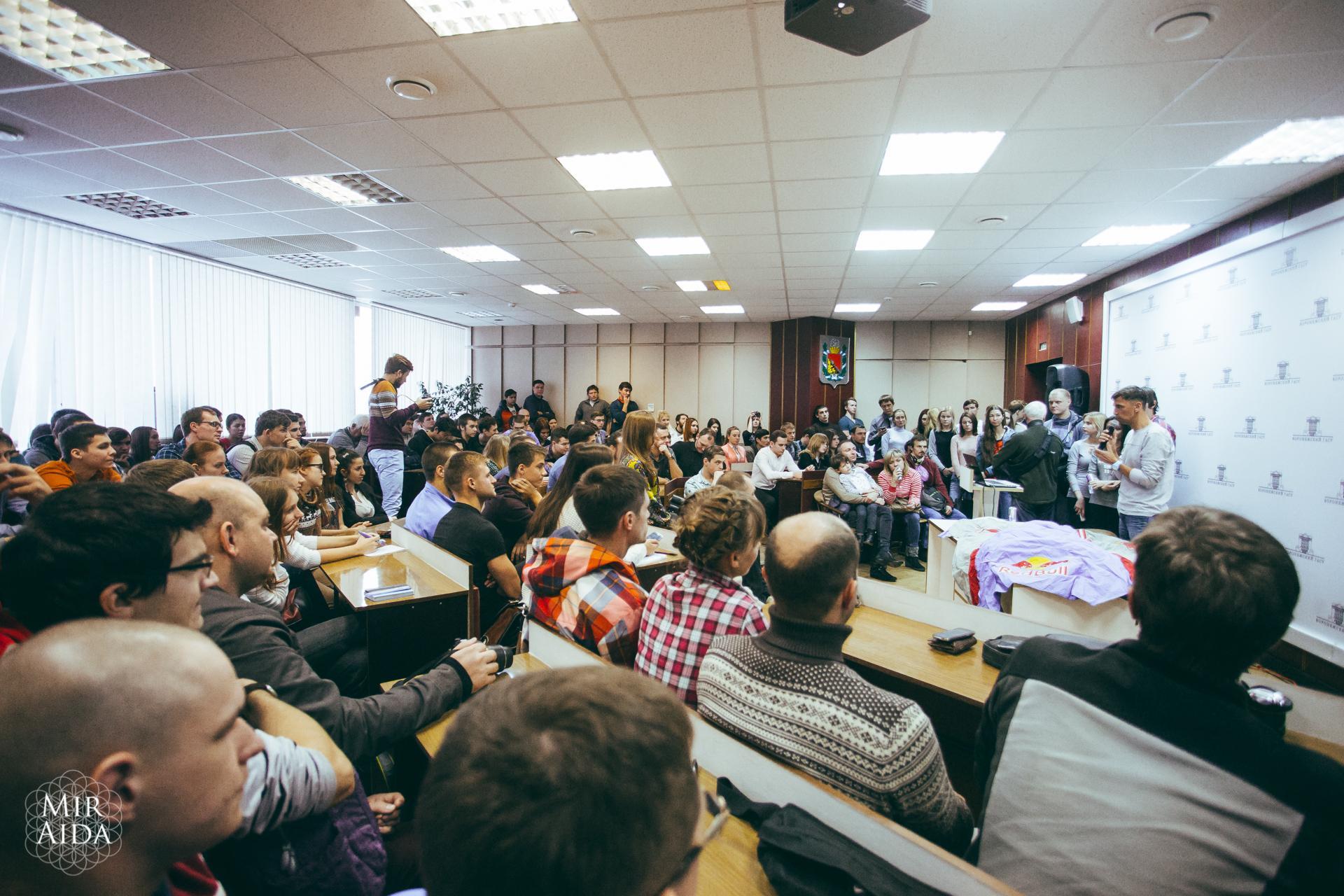 После вступительной речи проректора по учебно-воспитательной работе ВГАСУ Проскурина Дмитрия Константиновича, любознательные студенты и приглашенные на открытый урок спортсмены прослушали лекцию от профессионального альпиниста, тренера сборной России по артистическим видам парашютного спорта, Чемпиона мира по скайсерфингу, двукратного Чемпион Мира и Европы, создателя «Русского экстремального проекта» Валерия Розова.