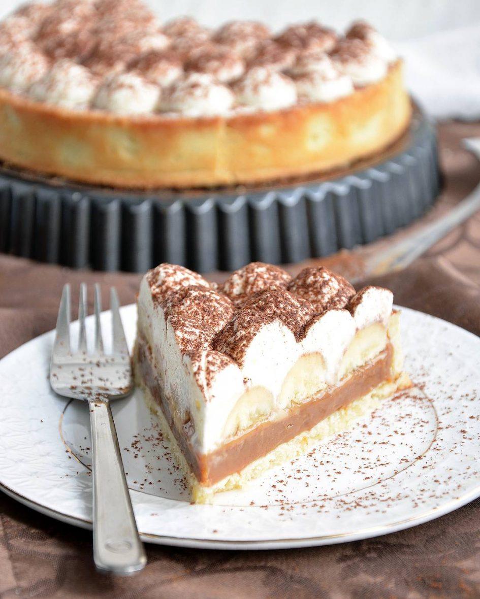 Английский рождественский торт, приготовленный с использованием хрустящей ириски домашнего приготовления. За основу десерта берется песочное тесто, далее на него выкладывается та самая ириска вместе с бананом, и все это покрывается сливочно-сырным кремом. Внешне торт очень похож на чизкейк.