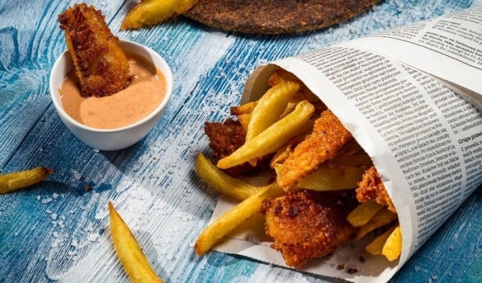 Самое известное британское блюдо, которое подают как в изысканных ресторанах, так и в пивных пабах. Оно представляет собой филе белой рыбы, обжаренное во фритюре в пивном кляре. Подается такая рыба с чесночным белым соусом и картофелем, традиционно приготовленным во фритюре, иногда запеченным до хрустящей корочки. Фиш энд чипс одинаково подходит как для ресторана, так и для перекуса «на ходу», поэтому он и подается чаще всего в бумажных конвертиках.