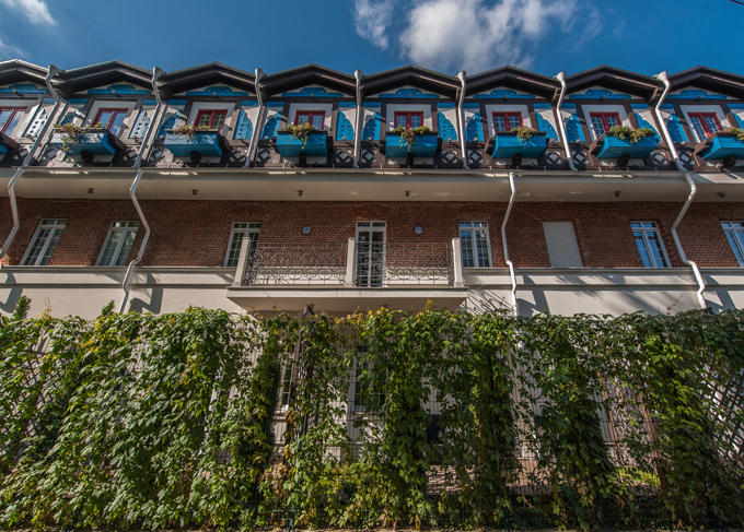 Здание гостиницы, будто сошедшей со страниц сказок, тем не менее, прожило уже достаточно долгую жизнь: оно было построено в 1826 году. При реконструкции и декорировании здания детали, передающие дух XIX века, были бережно сохранены: это и кирпичная кладка, и элементы декора, в частности плитка тех времен, сделанная крупным российским промышленником Берменгеймом, деревянные балки и перекрытия. Кажется, что время здесь остановилось: за надежными старинными стенами можно насладиться покоем и тишиной, забыв на время отдыха о городской суете.