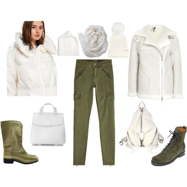 Для зимнего типажа нахождение рядом с лицом цвета хаки – вето, если вы конечно не хотите чтобы вас сравнивали с тоской зеленой или позеленевшей от злости особой. Как исправить ситуацию? Легко! Нижняя часть комплекта – юбка, брюки, обувь. А также аксессуары. Верхняя часть безусловно белого цвета.
