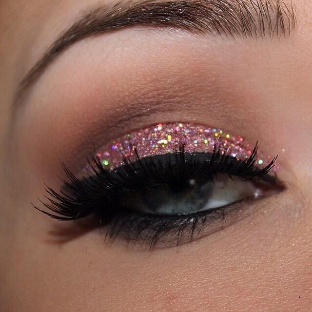 Глиттер можно использовать в качестве основного цвета. Обычно его наносят на подвижное веко.