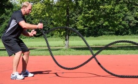 Следующее, с чем я буду вас знакомить, это канаты! Все знают - в каждой школе есть канаты. Так вот, новое - это хорошо забытое старое. Но никто и не думал, что пара канатов могут служить вам как кардионагрузкой, так и способом развивать вашу силу! Интересно ? Итак, как же они работают? Мышцы верхней части тела начинают интенсивно работать, в следствие чего повышается пульсовый диапазон. Тем самым мышцы получают нужное количество кислорода и через минуту начинается проверка вашей силы и выносливости. У канатов много плюсов – они занимают мало места, обладают простотой движения и эффективностью! В дополнение к тренировке сердечно-сосудистой системы, канаты увеличивают силу и выносливость мышц рук, плеч, спины брюшного пресса, бедер и кистей. Как правильно тренироваться с помощью каната??? Воспользуйтесь услугами персонального тренера и вы быстрее поймете и начнете тренировку грамотно, и результат не заставит вас долго ждать! Тренируйтесь разнообразно, не бойтесь пробовать что-то новое! Всем удачи и до встречи!!