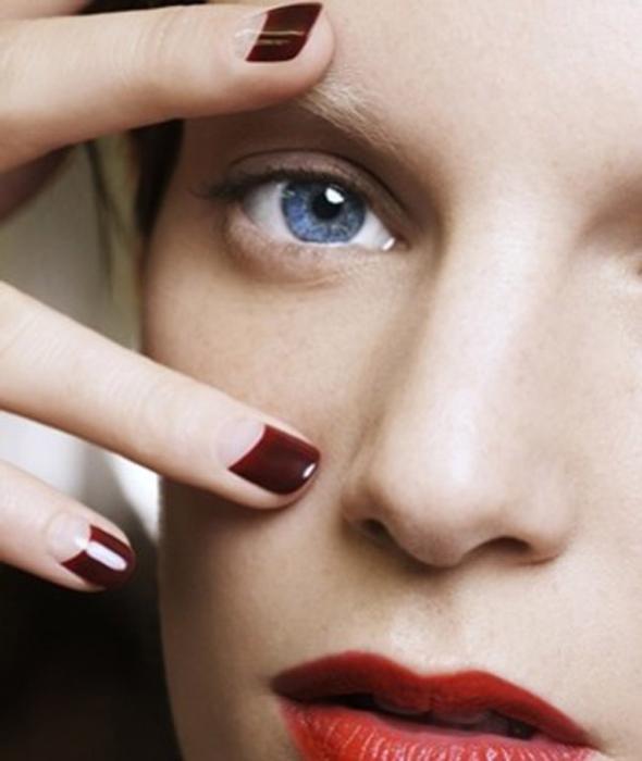 Как сделать: Можно с помощью полосок для маникюра. Но если вы работаете с лаком одного цвета, есть способ проще. Для этого вам понадобится тонкая кисть - придется купить отдельно. Нанесите лак полностью на ноготь, мокните кисть в жидкость для снятия лака и сотрите лишнее.