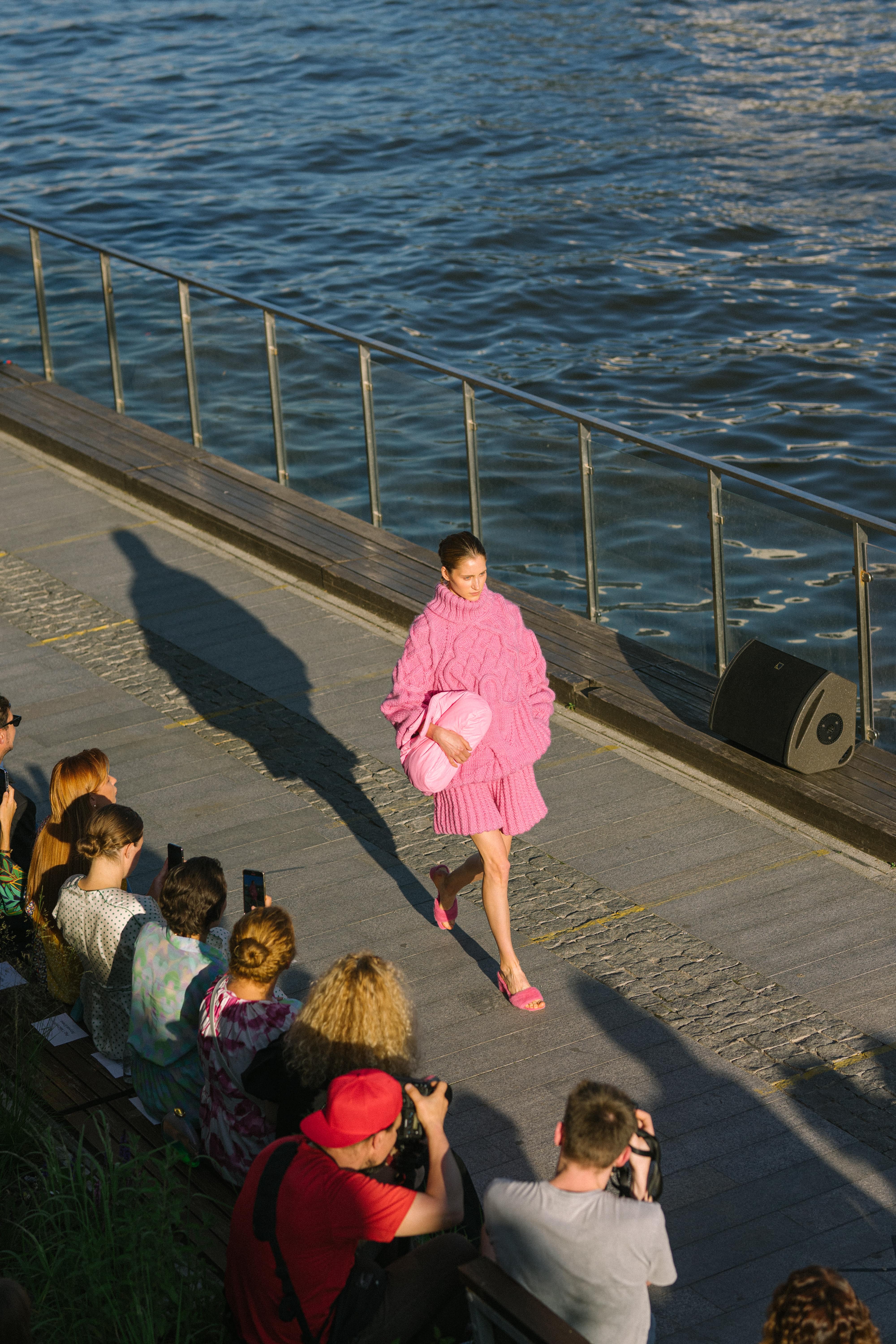 На Москворецкой набережной в парке «Зарядье» состоялся показ специальной коллекции AKHMADULLINA. Основательница бренда Алена Ахмадуллина обратилась к любимой теме русского костюма, чтобы интегрировать традиции в повседневную жизнь. Дизайнер использовала в коллекции элементы традиционного кроя и характерных элементов декора, представив их современную интерпретацию. Лейтмотивом коллекции стал русский объем. Алена гипертрофировала его и представила воздушные силуэты в сдержанной пастельной гамме с вышивкой крестиком в карамельных оттенках. Для этого традиционные флоральные мотивы были переложены на пиксели и выполнены в современной технике объемной вышивки в один цвет. Наряду с объемом присутствовала техника стежки и лоскутного шитья, которую можно было наблюдать в исполнении простеганных жакетов-телогреек, костюмов и шуб. Кроме того, в коллекции было много теплых вязаных фактур, яркость цвета нарастала по мере выхода моделей. Неизменные косы и кокошники в актуальной розовой гамме дополняли образы.