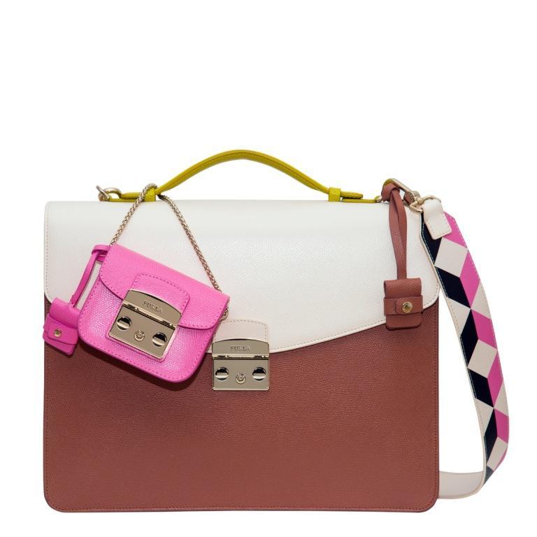 Универсальные модели аксессуаров нового сезона совмещают в себе сразу две сумки: большая и вместительная таит в себе мини-сумочку или клатч, который может быть использован как вместительный карман, так и отдельным аксессуаром, дополняющим идеальный вечерний образ. Вместительная Furla Dama и креативная Furla Fantasia идут в комплекте со съемной сумочкой Furla Metropolis на внешней стороне. Очаровательная маленькая Furla Metropolis смягчает строгость двуцветной объемной Furla Zafiro, которая остается по-прежнему многофункциональной благодаря своим вместительным карманам. Культовая Вселенная Furla Metropolis дополнена большой двуцветной версией с геометрическим 3D-рисунком на ремне или ручке. Главная жемчужина новой коллекции – сумка Artesia, которая идеально передает настроение весенне-летнего сезона. Благодаря структурированному дизайну, верхней ручке и мягкой коже она становится настоящим произведением кожевенного искусства. Яркая черта Artesia bag - геометрия деталей. Она словно состоит из фигур контрастирующих цветов. А металлические золоченые детали придают ее виду еще более элегантный вид. Обувь Furla - еще одна постоянная величина между формальным и неформальным стилем. Новые модели обуви – сникеров и лоуферов - идеальное воплощение концепции унисекс. Все модели аксессуаров и обуви из новой коллекции Furla сделаны из телячьей кожи, в том числе с тиснением в виде оленьей кожи или с забавными принтами комиксов.
