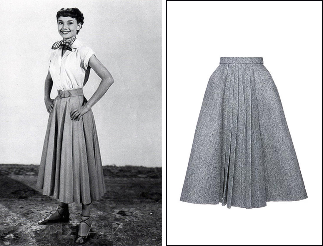 Многие элементы стиля Одри Хепбёрн становились популярными после выхода фильмов, в которых она сыграла. Так было и с юбкой-солнцем. Все девушки начали её носить после выхода «Римских каникул» в 1953 году. А юбку-солнце ниже колена (миди) вообще называют юбкой Одри Хепбёрн!