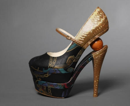 Туфли выполнены в стиле хай-тек. Они изготовлены вручную из дорогих материалов, украшены перьями и полудрагоценными камнями. Стать обладательницами этих роскошных туфель смогут только женщины с маленьким размером ноги – автор самых высоких в мире каблуков считает, что девушкам ростом выше 175 сантиметров такая обувь не нужна.