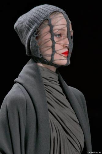 Сегодня вязаный подиум заполонили модели в стиле гранж. Одно из правил этого стиля – сочетать несочетаемое. Теплый вязаный кардиган поверх полупрозрачного шифонового платья именно то, что нужно. Например Армани предлагает нам чудные пушистые платья из ангоры в сочетании с брюками и шляпками-котелками.