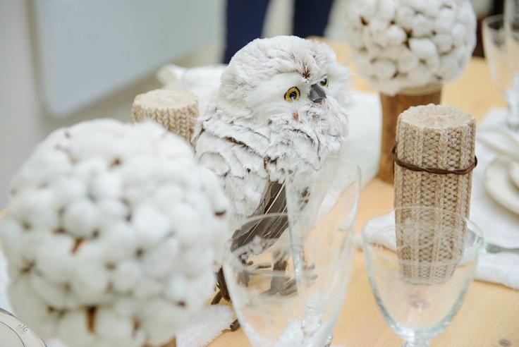 ЕК: В новогодней теме не существует границ! Здесь можно использовать все, что угодно. Я, в первую очередь, рекомендую обратить внимание на елочные игрушки. Из них, например, можно сделать потрясающее кольцо на салфетку. У каждой игрушки есть петелька, достаточно только вложить туда красивую ленту, обвязать ею салфетку, и отличное украшение готово! Можно украсить тарелки и стол птичками на прищепках, которые можно сегодня купить везде. Не стоит забывать и маленьких фигурках Дедов Морозов, которые можно подарить гостям в качестве комплимента на память о вечере. Я часто дарю маленькие подарки гостям, например, делаю для них самодельное печенье, кладу его в красивый пакетик и вуа-ля! Приятно и вкусно! Обязательно обратите внимание на свечи – они помогут создать необыкновенную обстановку. Вы можете купить самые дешевые маленькие круглые свечи в магазине, обклеить их ярким цветным скотчем, и у вас получится совершенно новые декор. Можно использовать длинные свечи для оформления центральной линии стола, или же поставить веточку елки в красивый большой граненый стакан. Можно на скатерть рассыпать блестки, и ваш стол начнет сверкать и парить, или же присмотритесь к кокосовой стружке, которая предстанет в виде снега на вашем новогоднем столе.
