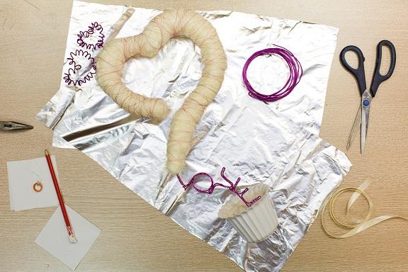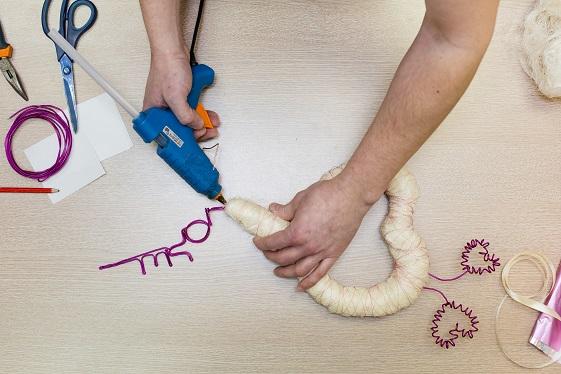 Роман решил сделать ассиметричное сердце из пенопласта, украшенное кокосовым волокном и проволокой-бульонкой. Купить необходимые материалы не составит труда в любом магазине для рукоделия. Изготовление подарка ко дню всех влюбленных заняло час.