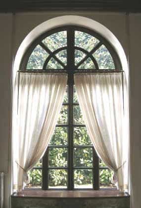 Эти декоративные шторки вешаются на небольшой карниз, который крепится непосредственно на створку окна. Получается, что шторка защищает помещение от посторонних глаз, но при этом не перекрывает доступ света.