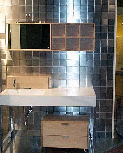 От перегородок не далеко ушли стены из стеклоблоков. Смотрится красиво, главное, сделать со вкусом - чтобы не получилось, как в больнице! Для этого лучше отдать предпочтение ярким цветам. Стеклоблоки продаются почти во всех магазинах, где можно приобрести керамическую плитку. Кстати, и плитка может быть не просто глянцевой, а даже металлической. Но за такими поверхностями нужно тщательно ухаживать - уж очень на них видны малейшие пятна и пыль.
