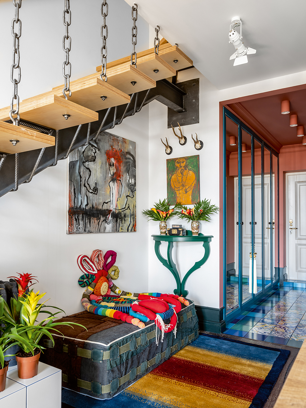 Каждый мой проект — это история, которая начинается с общения с заказчиком, но им не ограничивается. Это история семьи, путешествий и хобби, дома и ландшафта, частью которого он является. в конечном итоге мы всегда стремимся к тому, чтобы архитектура и дизайн воспринимались неким нарративом, а не просто набором дизайнерских решений и трендов. На ум сразу приходит один из «исторических» проектов — квартира в малом трехсвятительском переулке, которую мы сделали для моих друзей, рестораторов Дениса и Наили. Эту квартиру они сняли в центре города для себя (у ребят есть взрослый сын, который не живет с ними). Из небольшой «трешки» мы сделали одно большое пространство, которое наполнили историей семьи: здесь и советский винтаж, включая аутентичную мозаику с портретом Ленина с завода в Вичуге, и азиатский колорит в виде картин балийского художника Панди, и винтажные предметы с французского блошиного рынка. Но моя главная идея заключается в том, что интерьер должен быть «живым». Мы хотим, чтобы хозяева дополняли его тем, что им дорого: сувениры из путешествий или семейный гарнитур — все должно вписаться в него, потому что это «ваше» пространство, а не картинка для публикаций в интерьерных журналах.