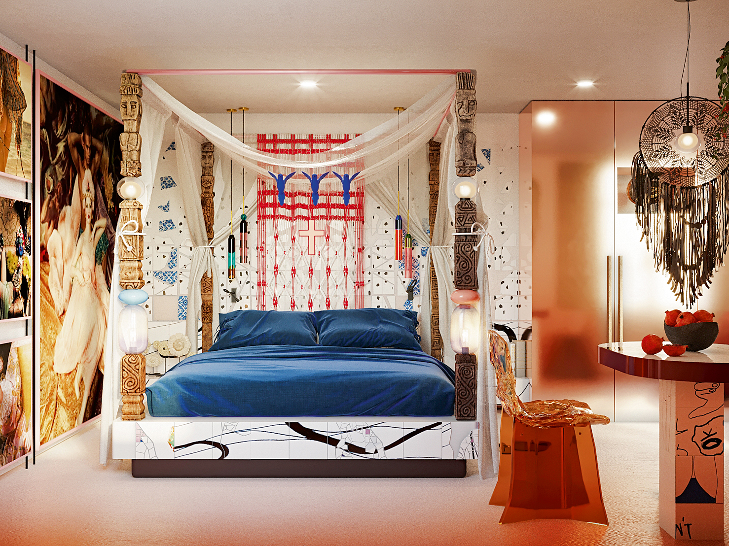 Для кого‑то — это спальня, для кого‑то — столовая, для кого‑то — ванная, место, где он может побыть собой и напитаться энергией дома. например, я люблю свою спальню, кровать в которой оформляла сама. Очень трепетно отношусь к различным сакральным и рели‑ гиозным символам и в принципе толерантна ко всем религиозным конфессиям. У меня в спальне католический уличный барельеф (знаете, такие скульптурные изображения девы марии и святых перед маленькими уличными алтарями) соседствует с ловцами снов из долины смерти в США.