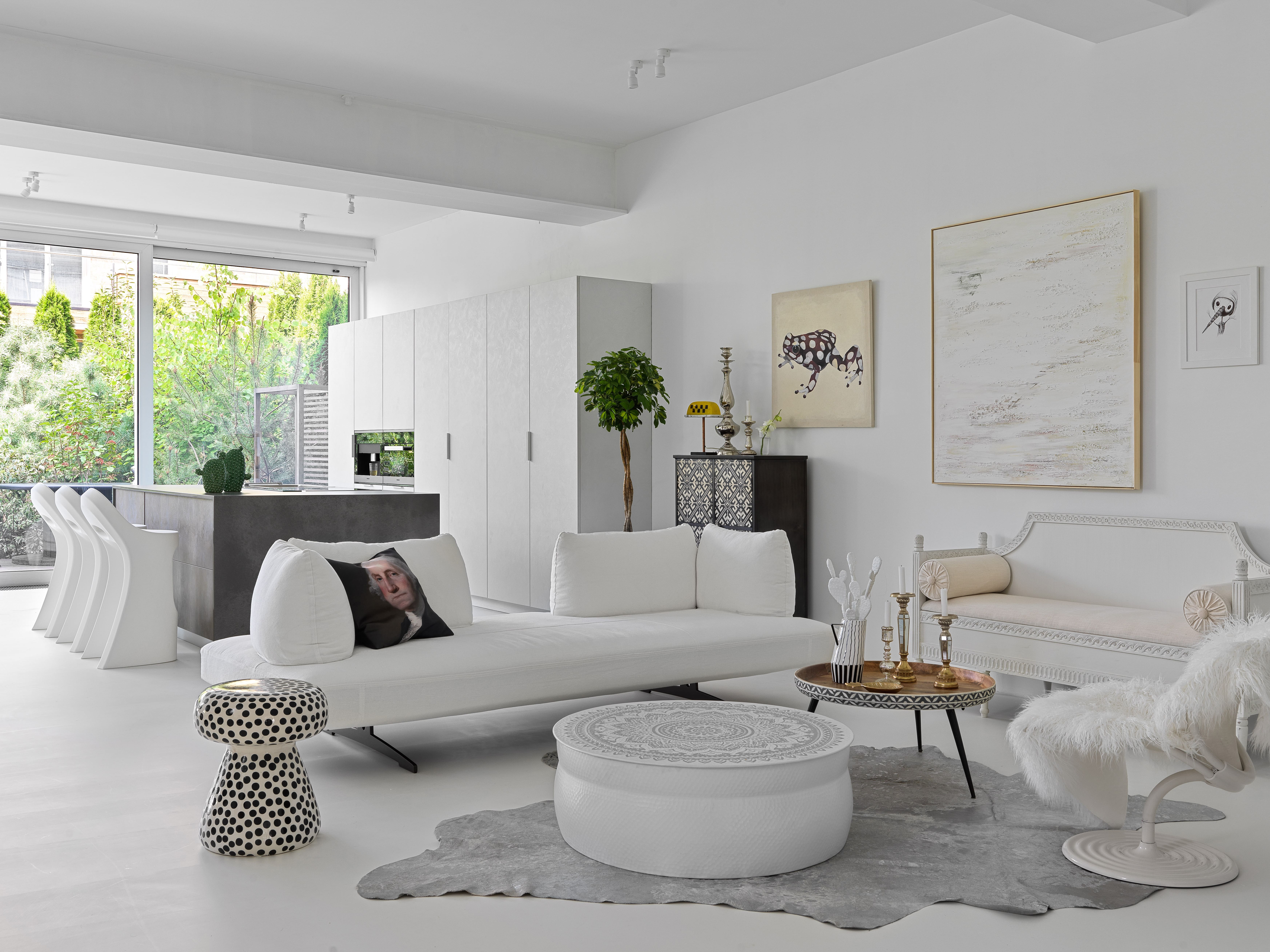 В проектах Анны рядом с дизайнерской мебелью нередко соседствуют необычные предметы ручной работы. Созданные ею интерьеры, скорее, напоминают арт-инсталляции, впрочем, вполне практичные. Не всегда «пушистые», но непременно белые — это господствующий цвет во всех работах