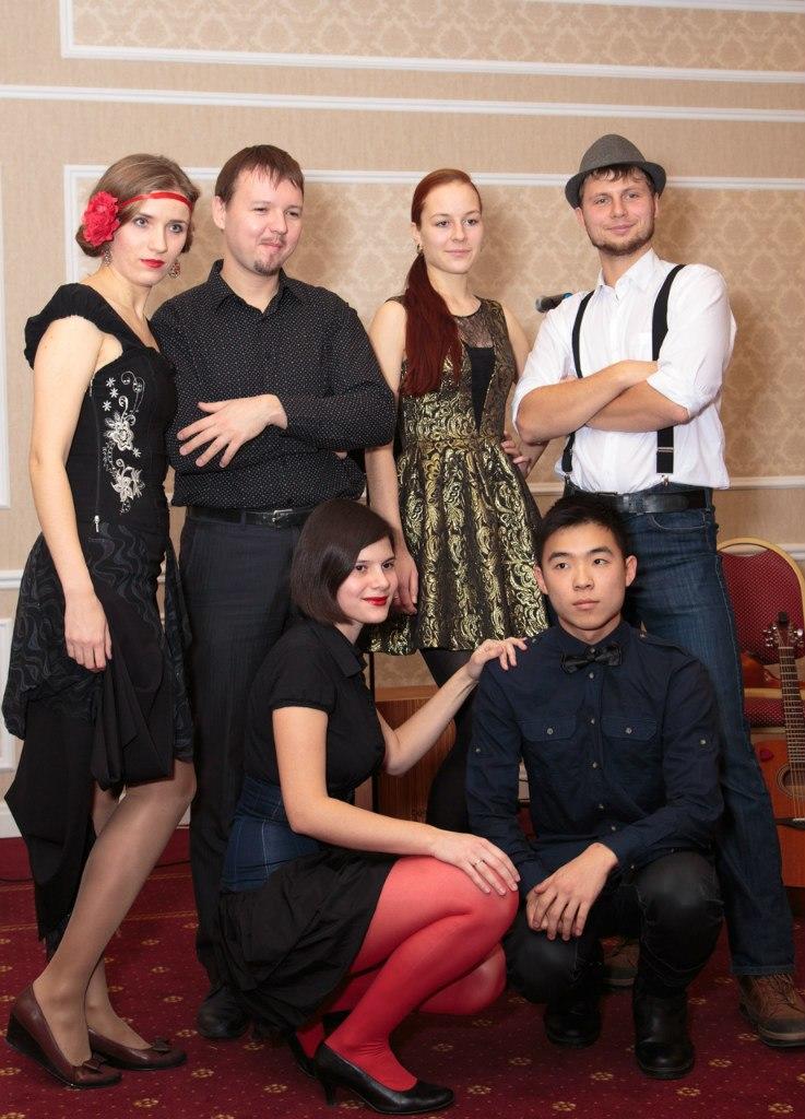 Начало мероприятия было намечено на 19:00, но уже за пару часов до вечеринки в роскошном зале отеля "Дегас" появились молодые люди в костюмах времён 20-х годов прошлого столетия. Как выяснилось, это были участники события - модели кабаре-дефиле и музыканты домра-бэнда "Большая игра".