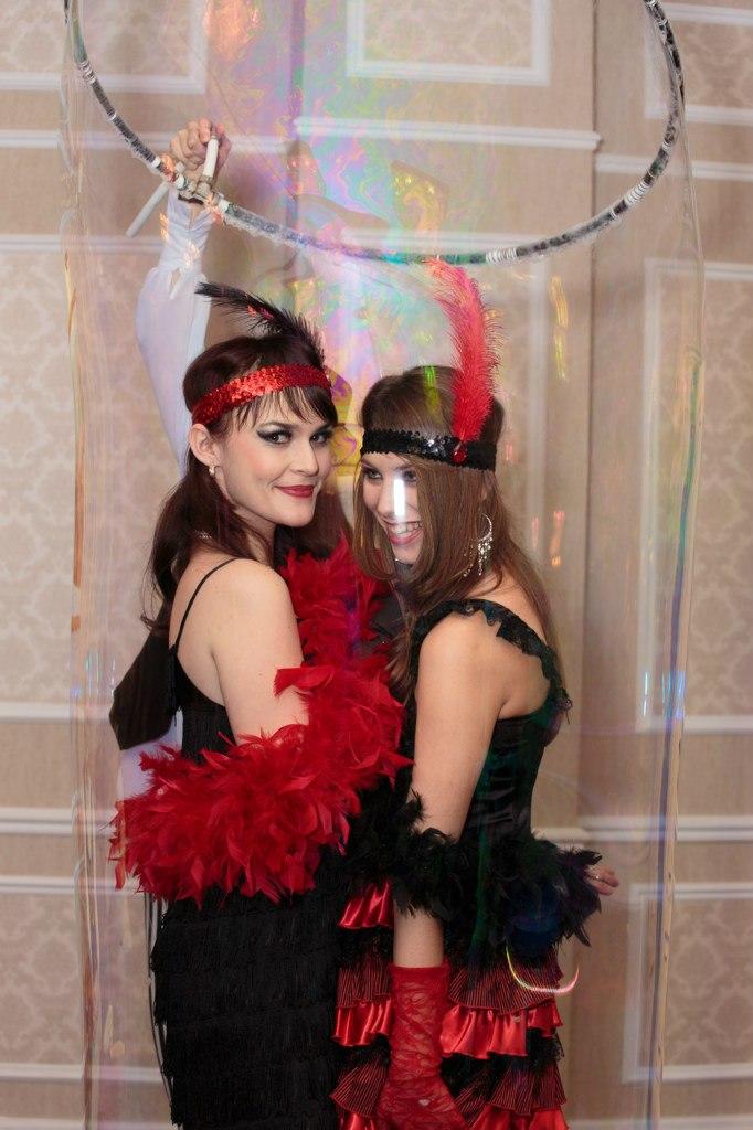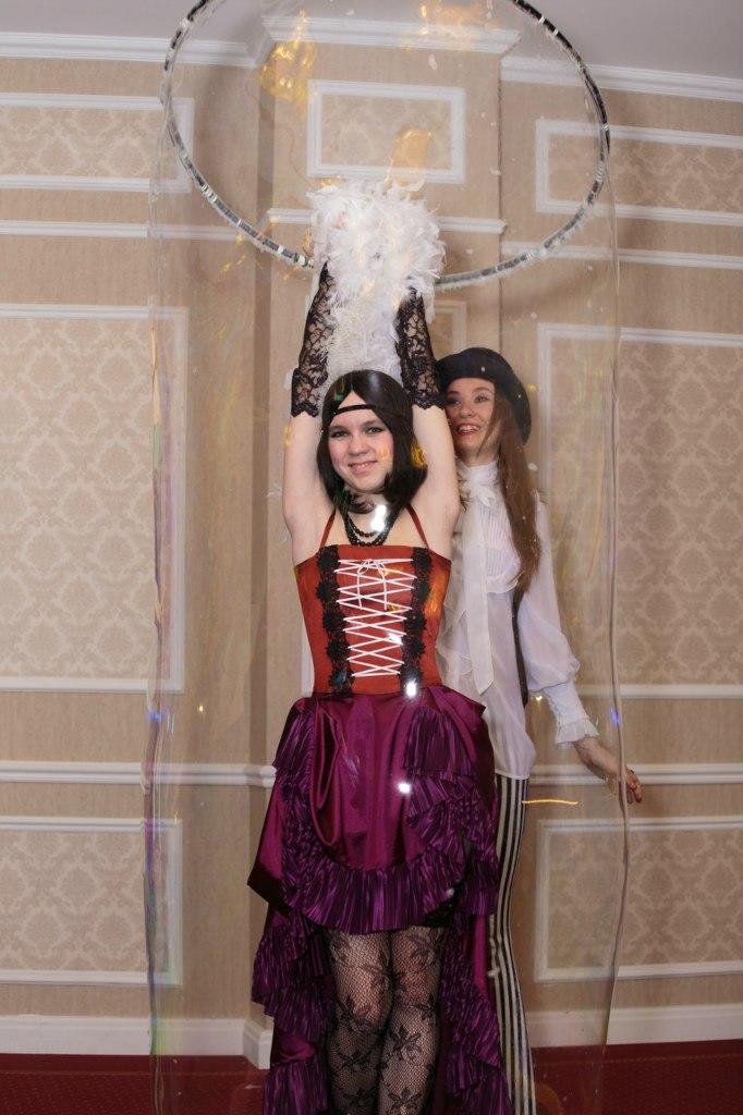 И тут...настало время волшебства. Его подарил дуэт The Пузыристер's. Появление ребят в импровизированном кабаре было неожиданным, но имело очевидный успех! Особенно гостей вечеринки поразил номер с заключением человека в огромный мыльный пузырь! Радужное, яркое выступление и не менее яркие и радужные, несмотря на чёрно-белые костюмы, выступающие не оставили равнодушными ни детей, ни взрослых.