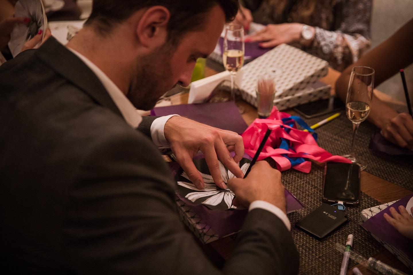 Вечеринка «ART MIRO» прошла в ресторане «IL Forno». Евгения Миро рассказала о жизни в эмиграции, о работе с Hermès, о русских мотивах в своём творчестве и о создании дизайна для аксессуаров. Художница показала тарелки и платки, созданные для Hermès и с каждым расписала фарфоровую тарелку от Императорского Фарфорового Завода, которую гости забрали на память об art-party.